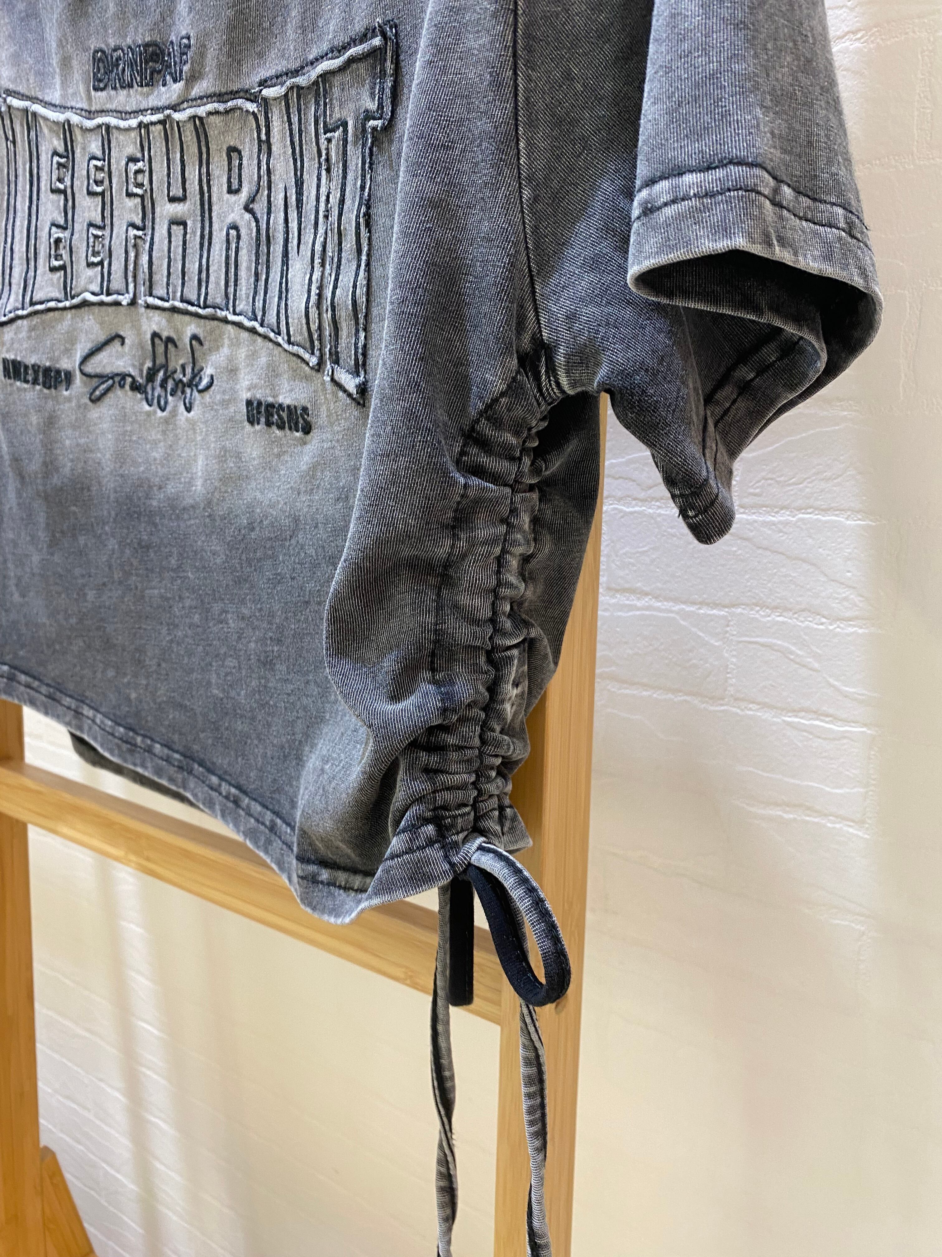 ヴィンテージライクな風合いがお洒落なショート丈ブリーチTシャツ。刺繍ロゴとサイドドロストがポイント◎