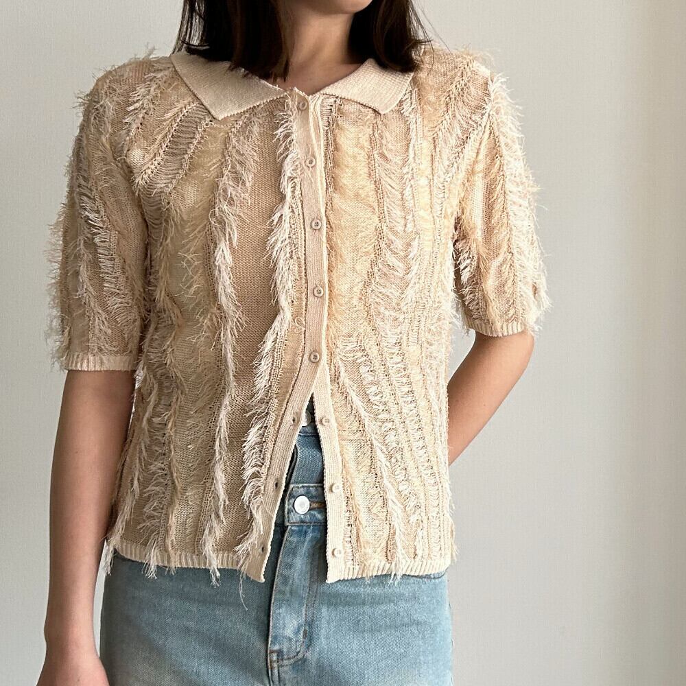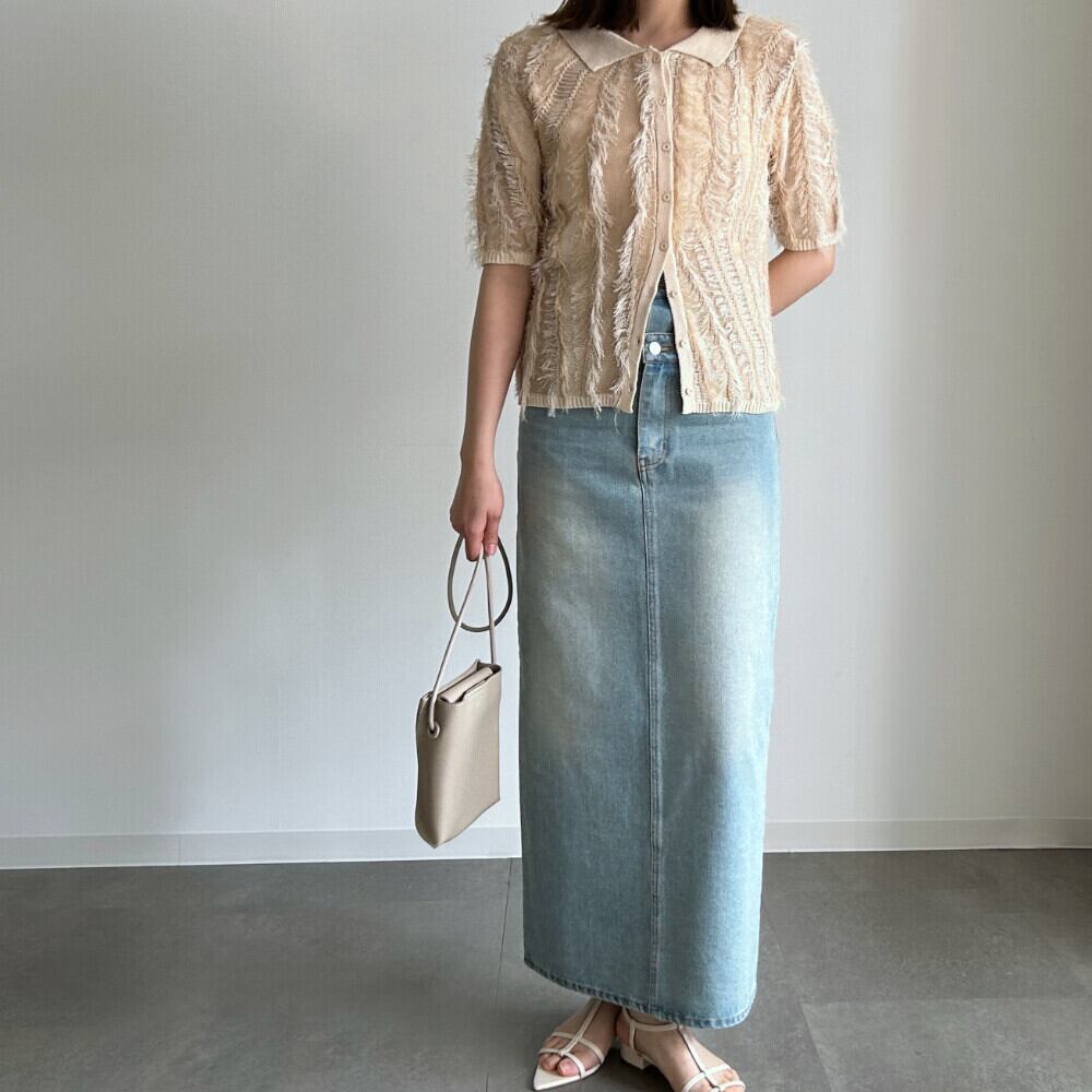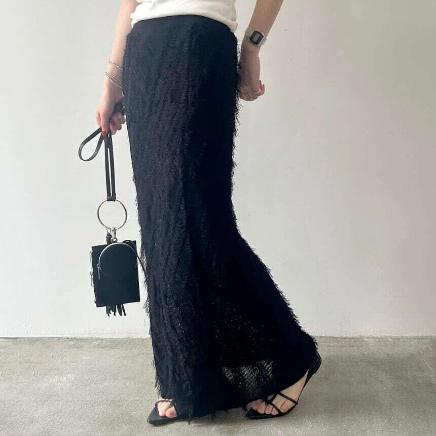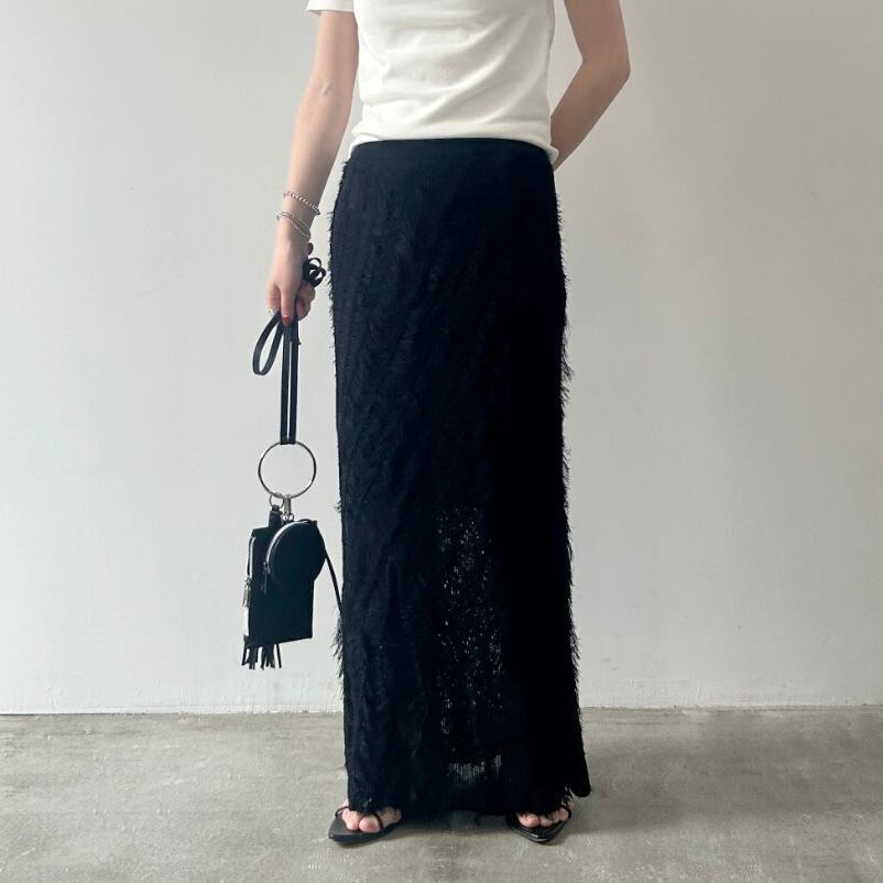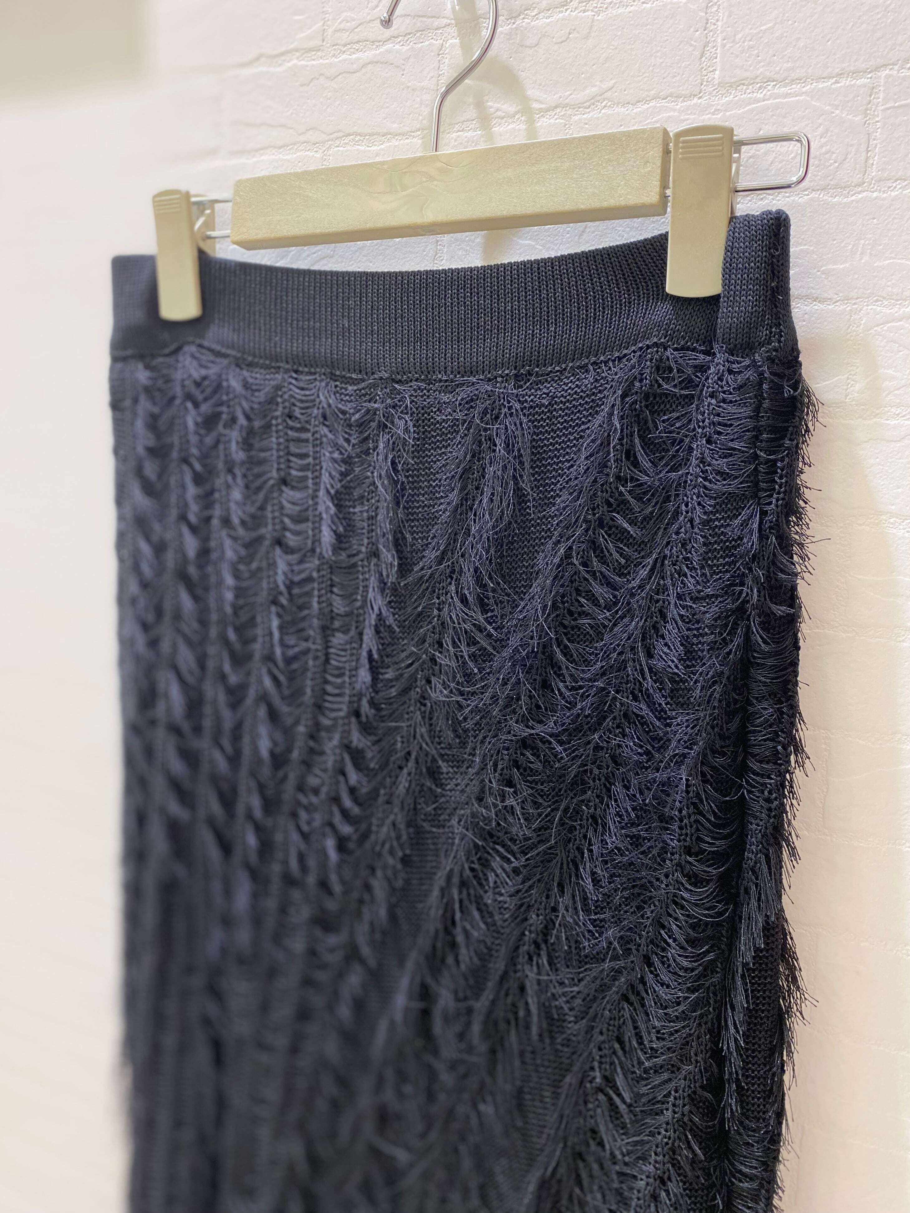 【2点SET】麻タッチフリンジポロニットトップス+スカート