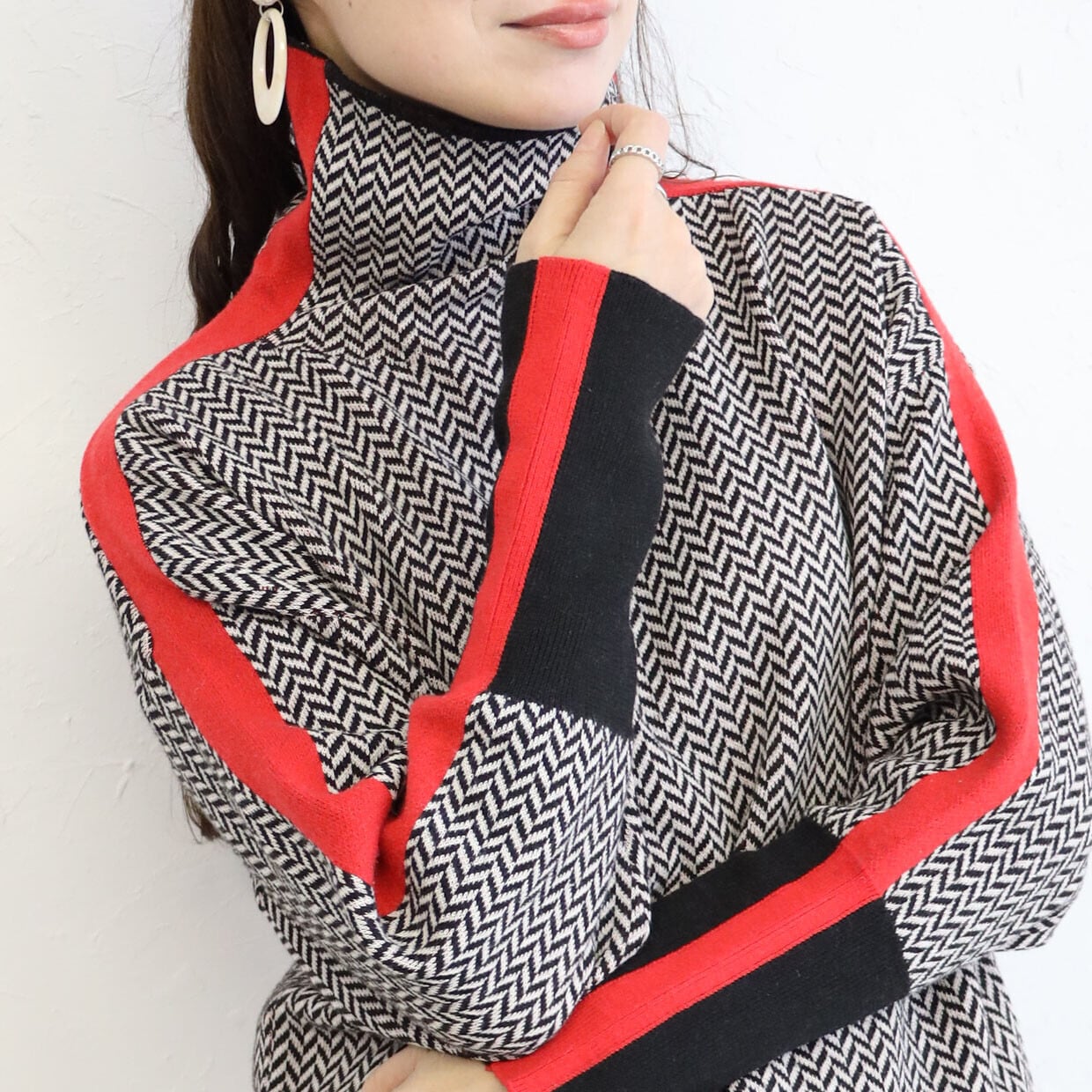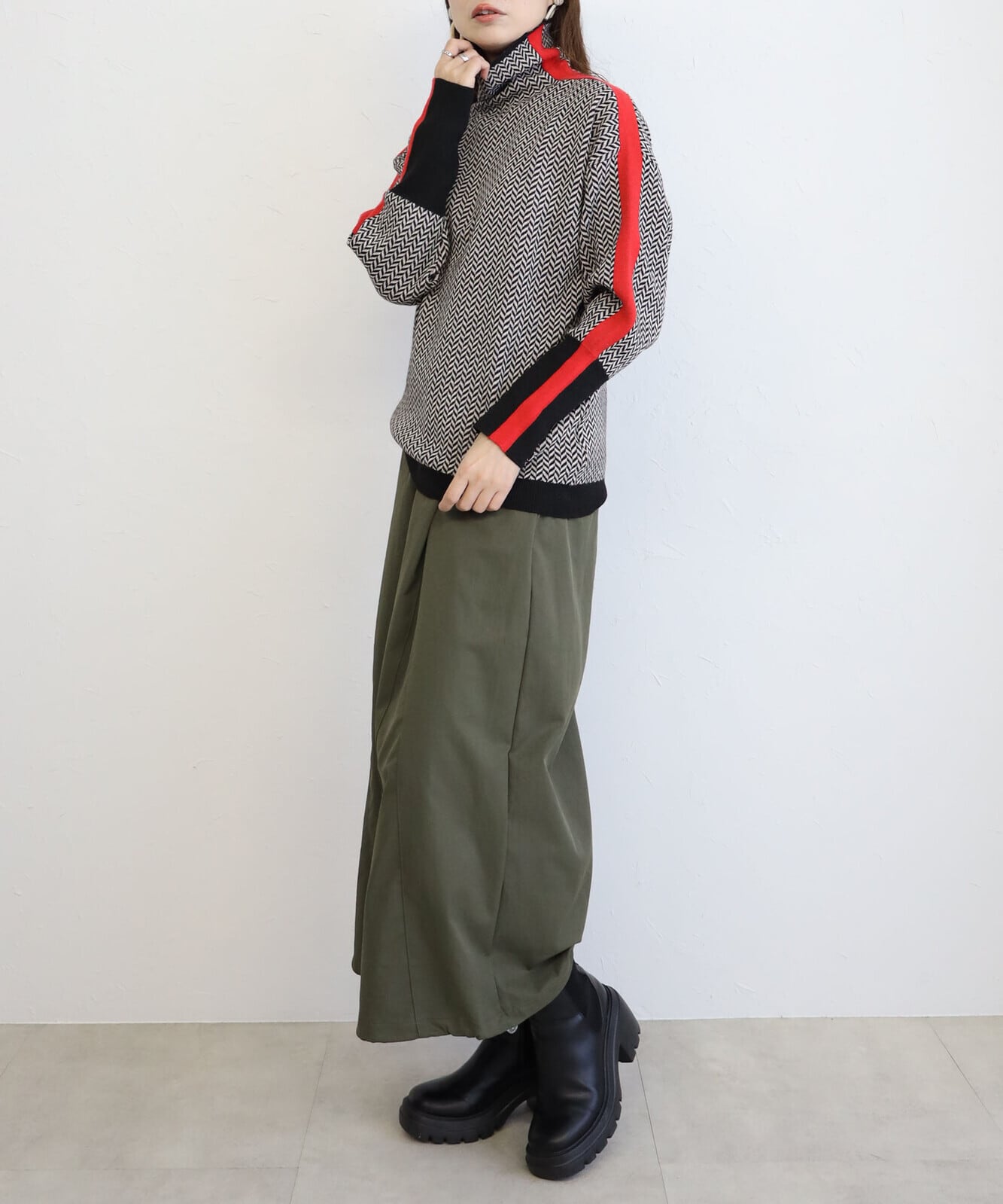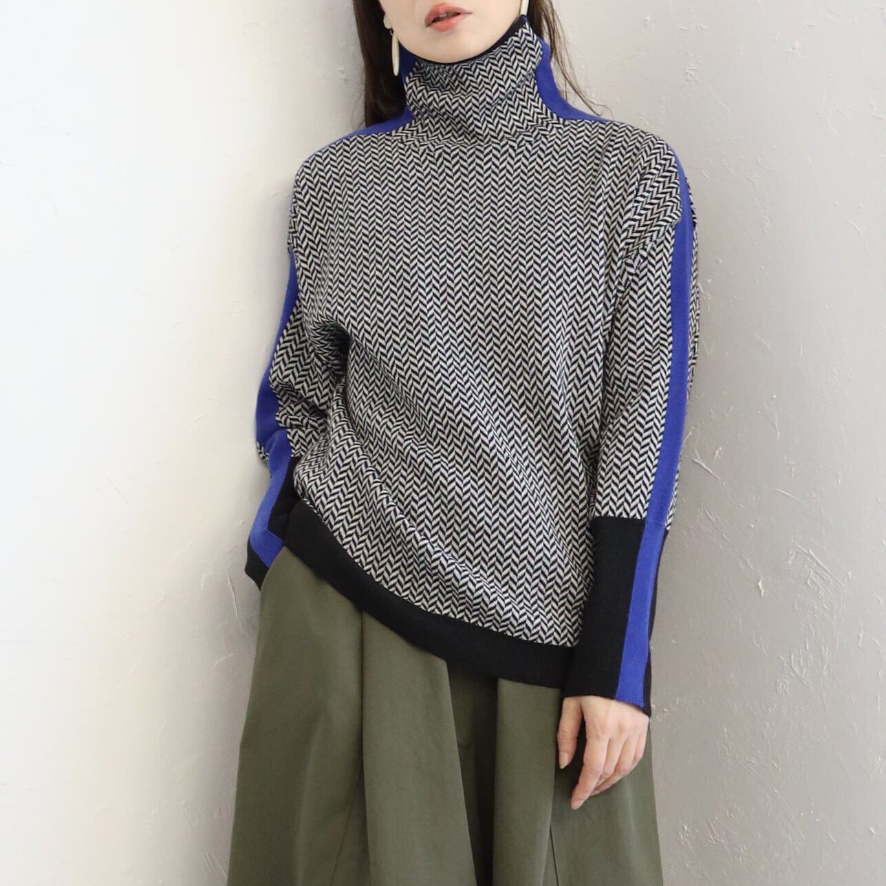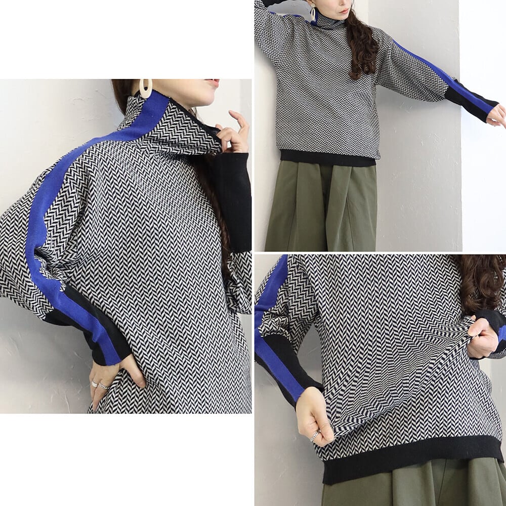 サイドラインハイネックニット