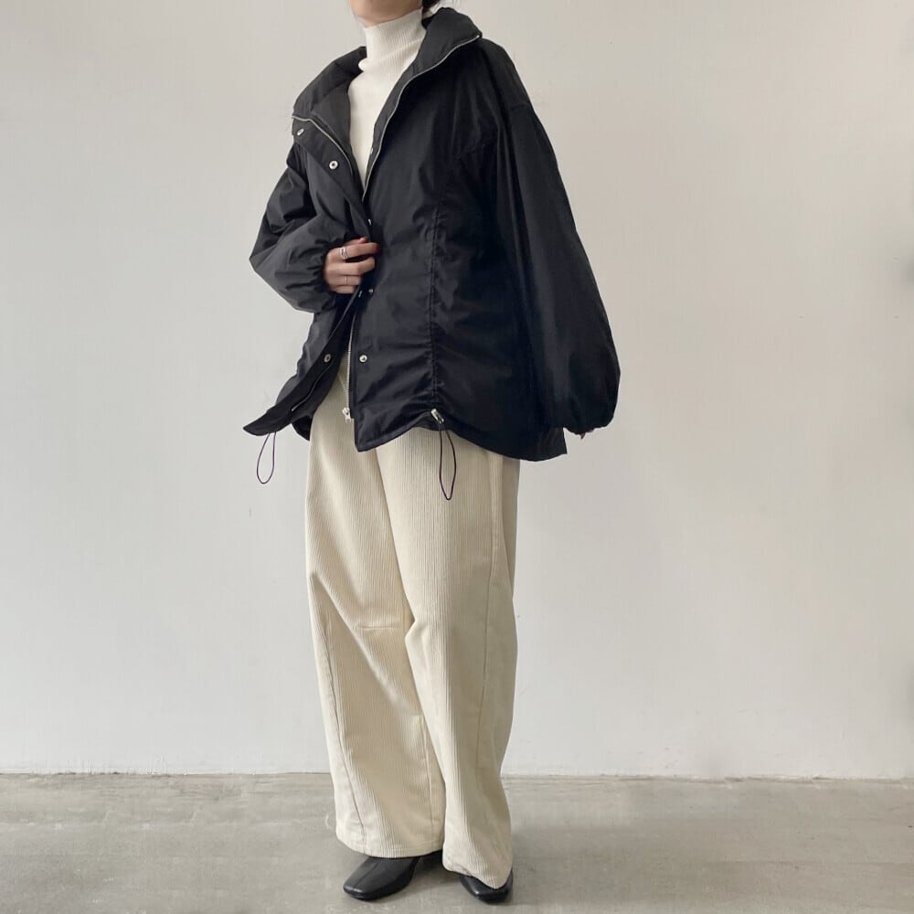 ギャザーの寄せ方をドロストで調節し、お好みのシルエットで着用いただけます♪