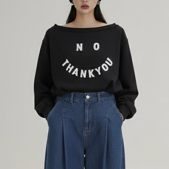 ボートネックロゴプリントプルオーバー