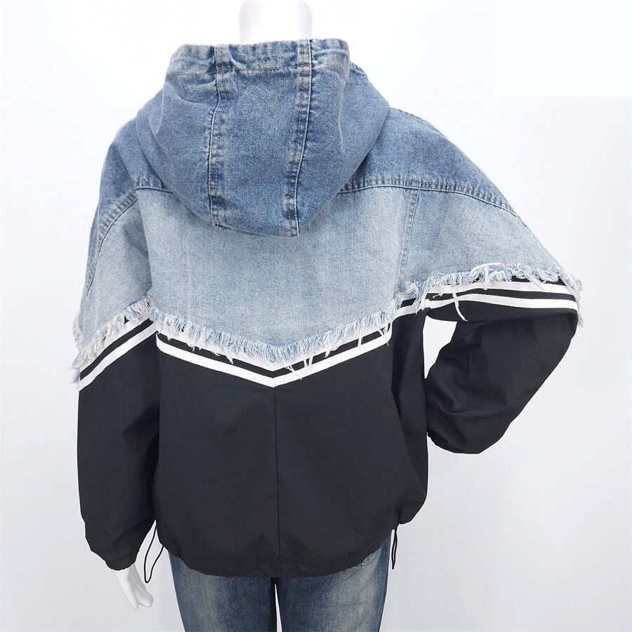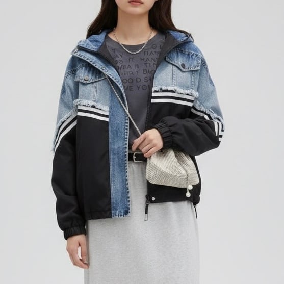 デニム切り替え フード付ジャケット