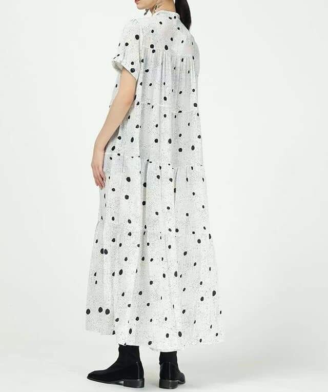 モード系 ドット柄ロングワンピース