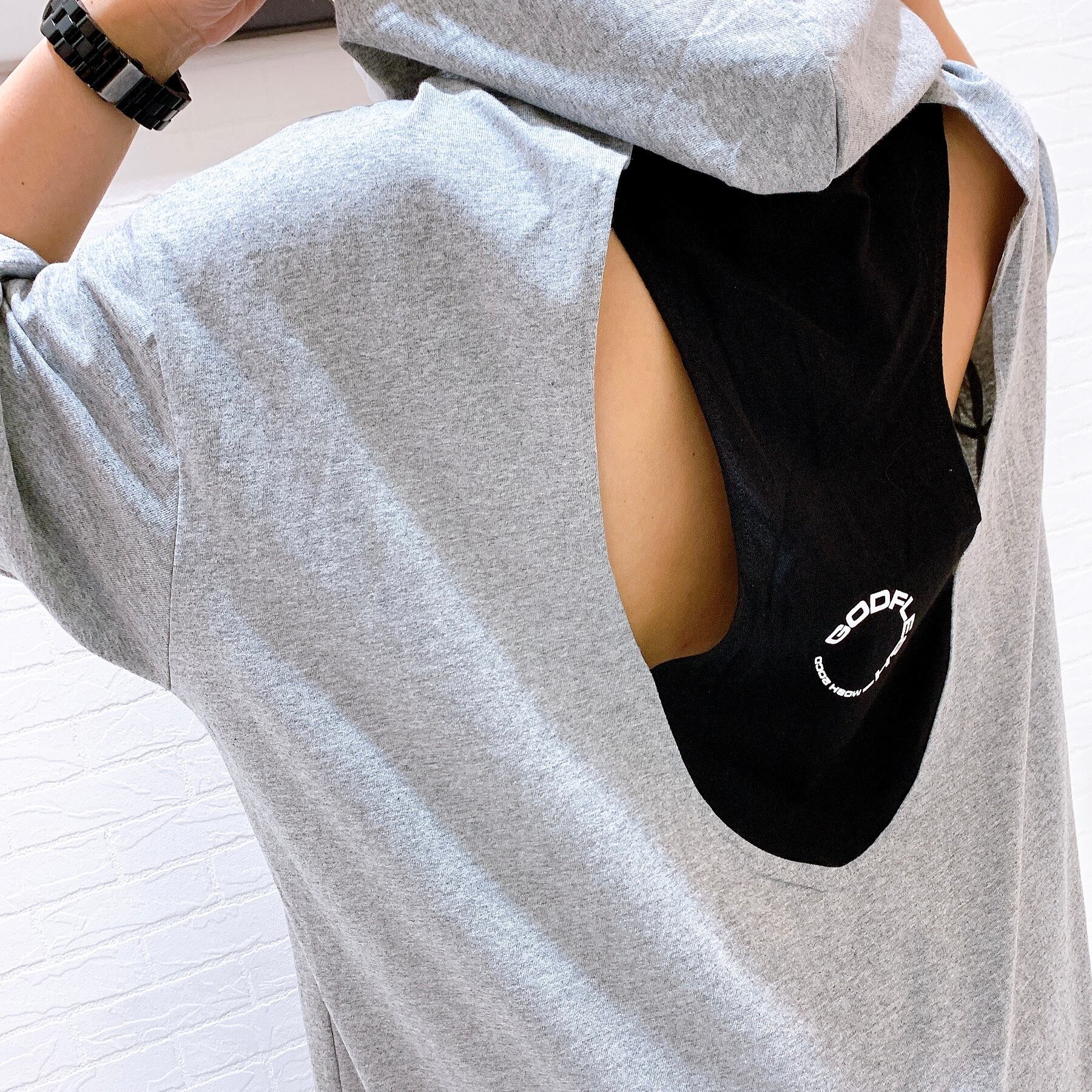 ロング丈 Tシャツワンピース マキシ丈 オーバーサイズ 背中開き フード付き