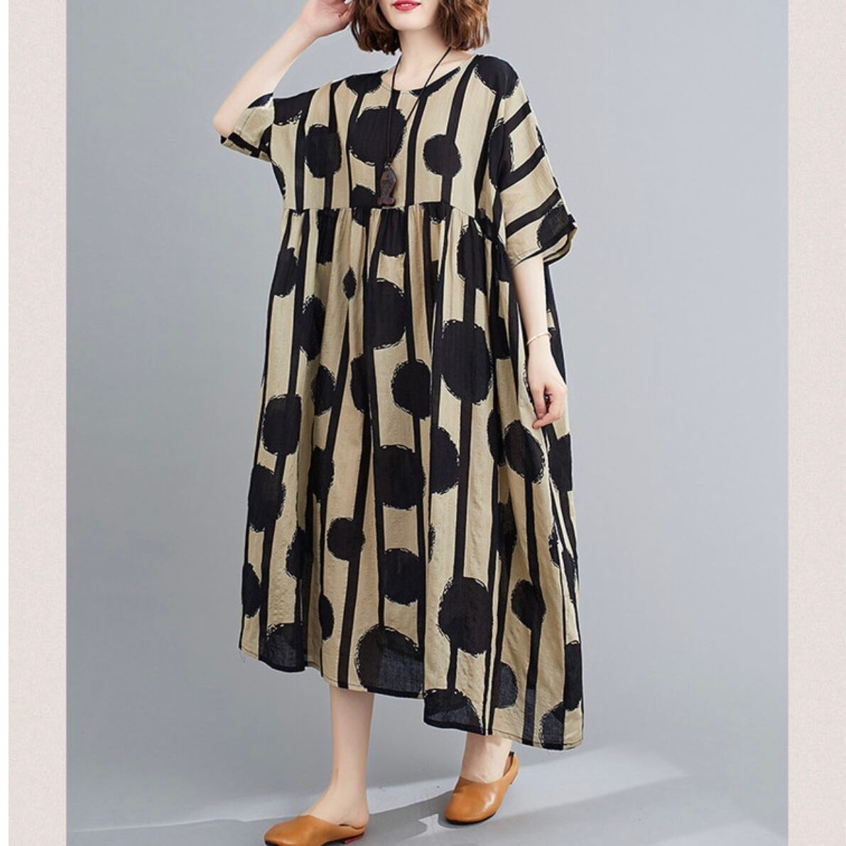 【ゆったりサイズ】モード系 ドット柄ワンピース