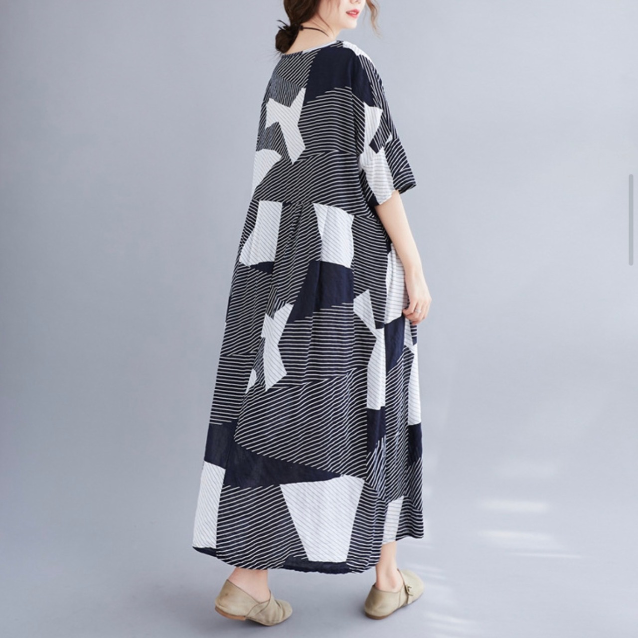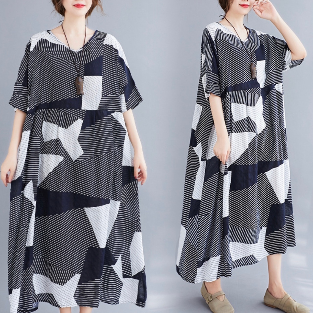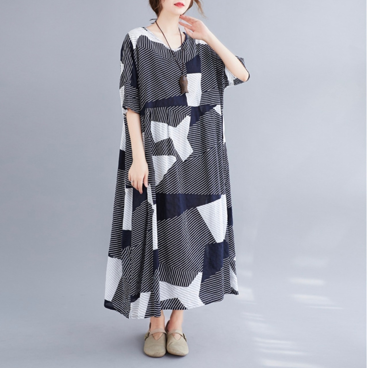 【50%OFF】【ゆったりサイズ】モード系 幾何学柄ワンピース