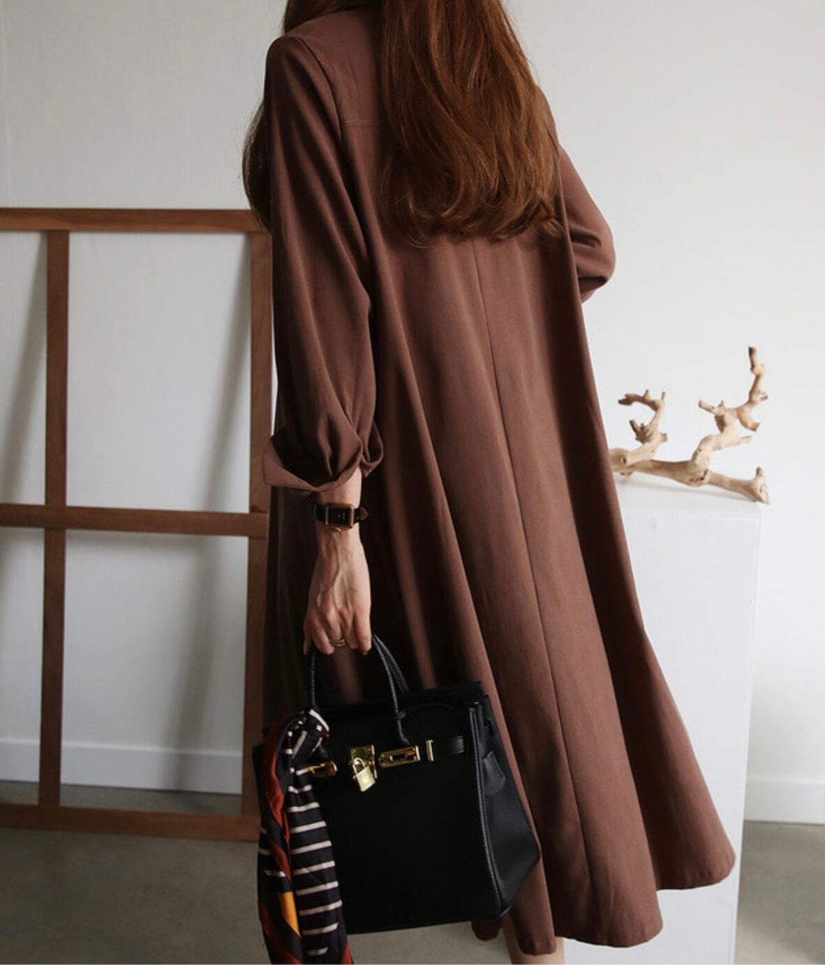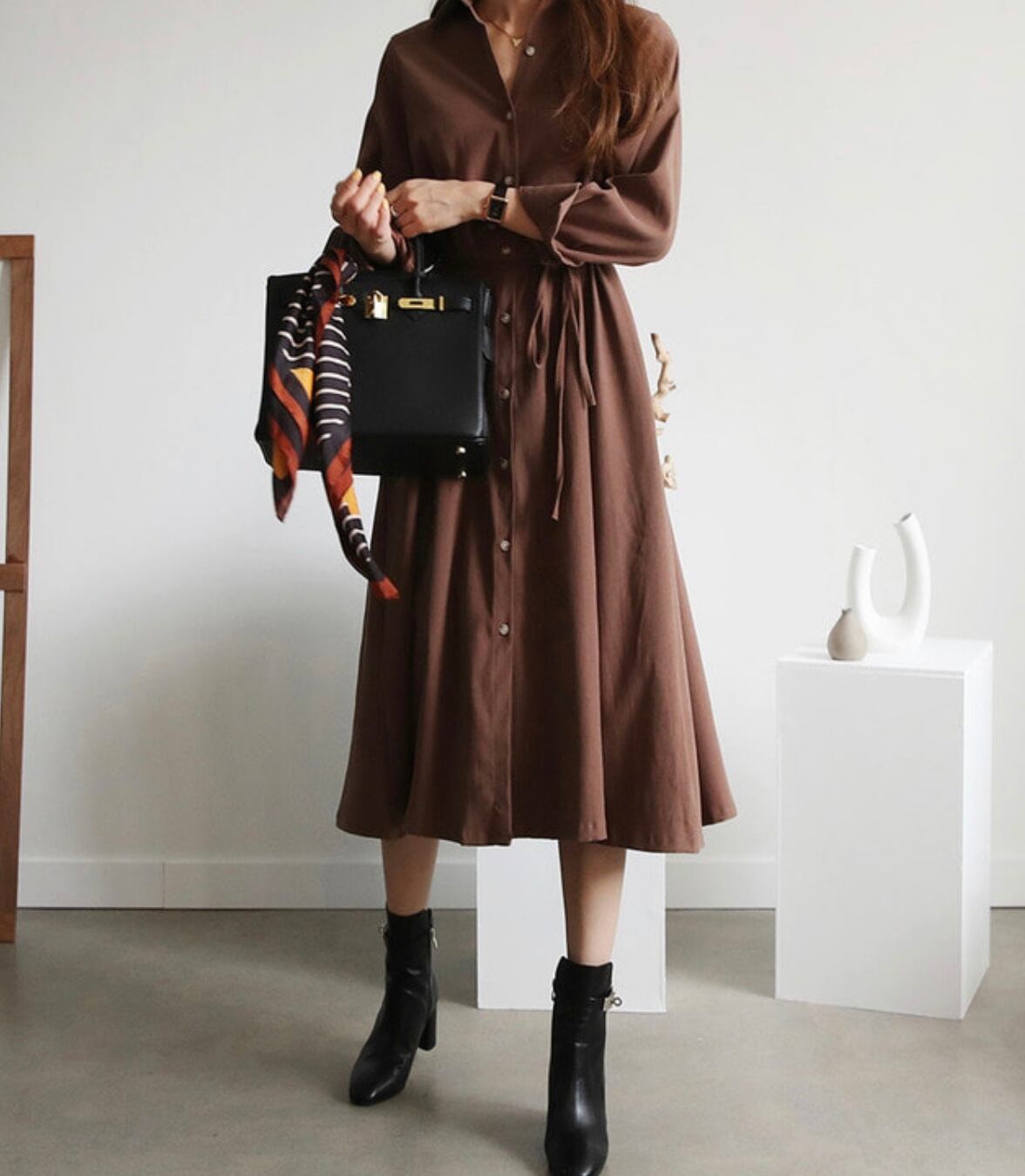 上品かつセンス良く着れるAラインシャツワンピース。
