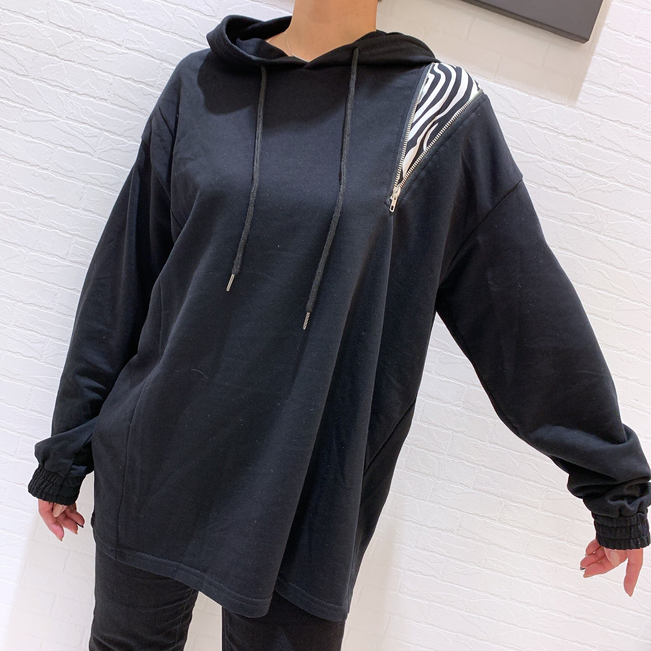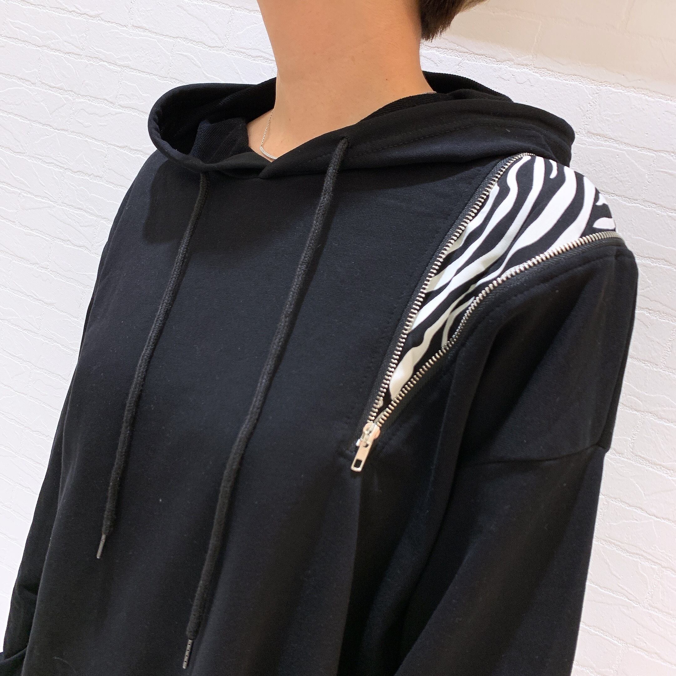 ゼブラ柄フーディー トップス フード付き パーカー