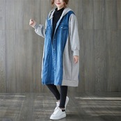 【30%OFF】裏起毛 デニム切り替えフード付きジャケット