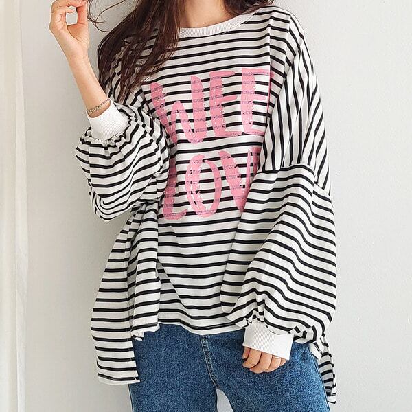 ロゴプリント ボーダービッグトレーナー