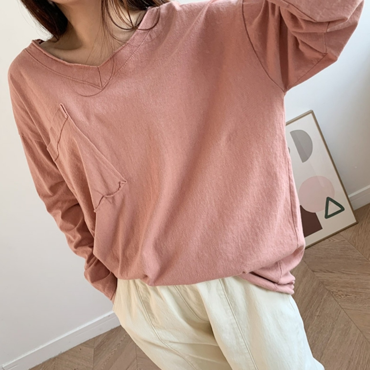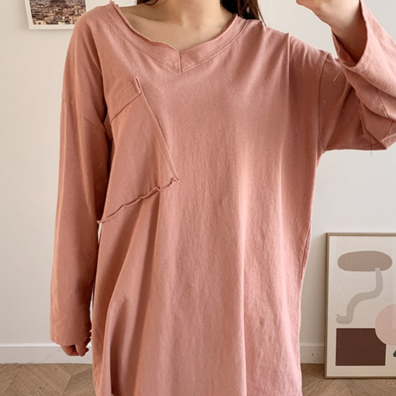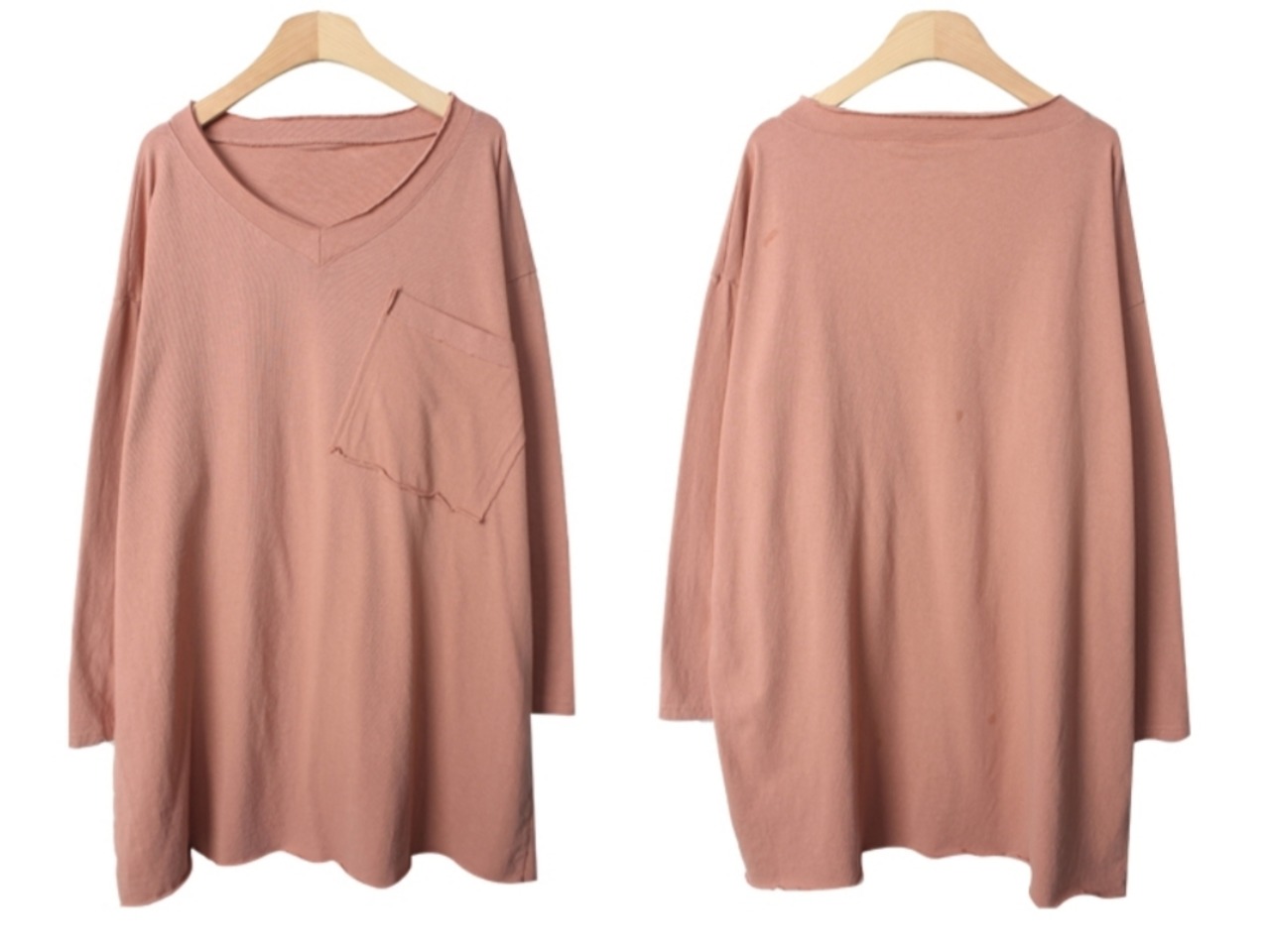 Vネック ロングTシャツ