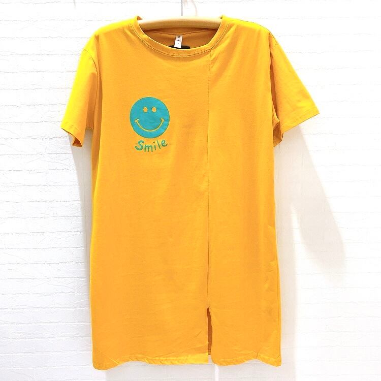 【price down】スマイル プリント ロング丈Tシャツ ワンピース