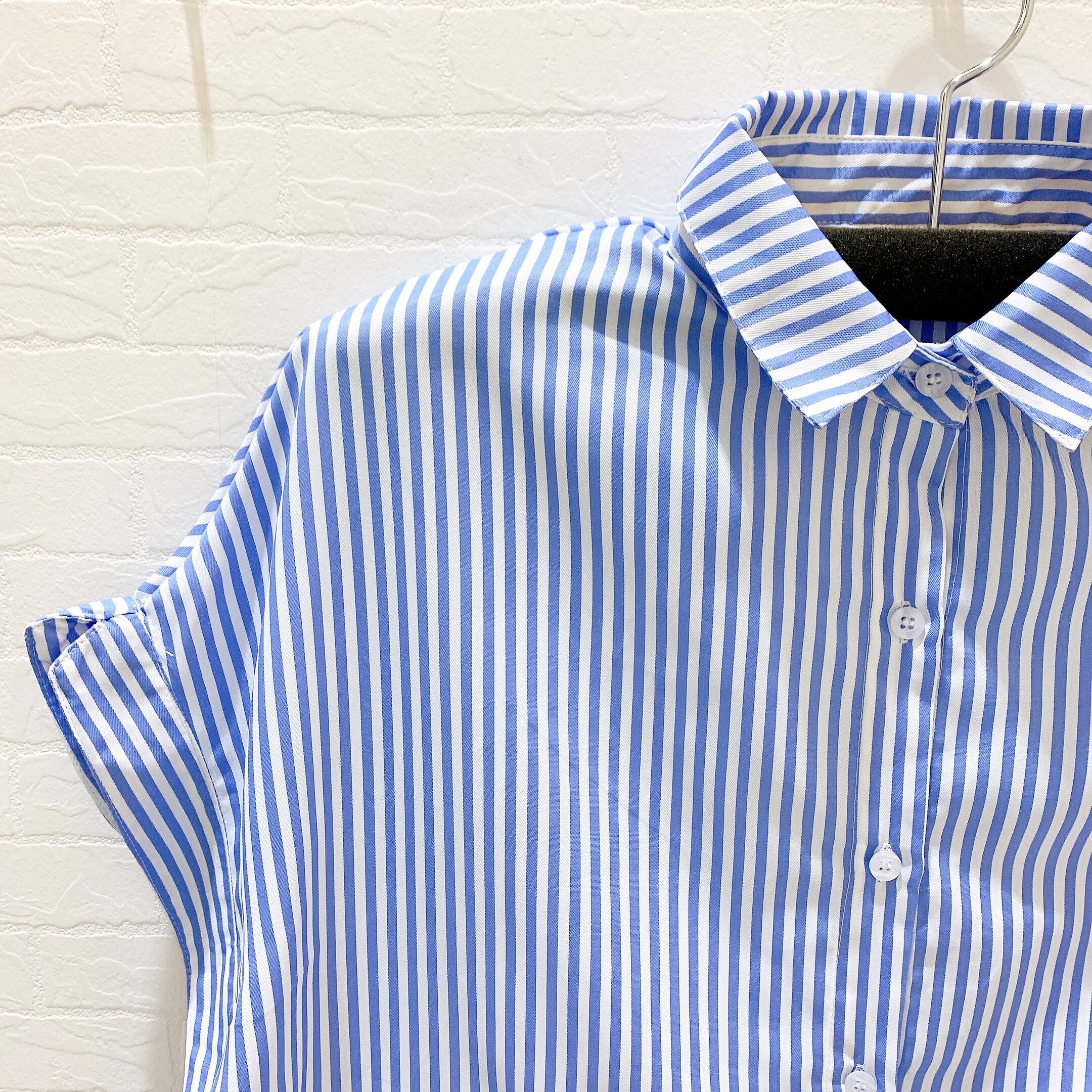 ウエストリボン付き ストライプシャツ ワンピース