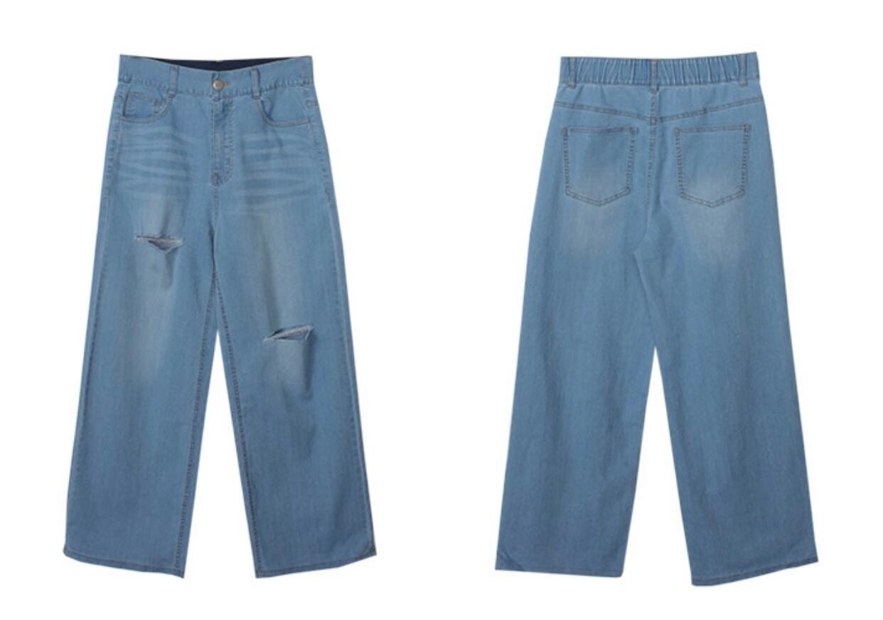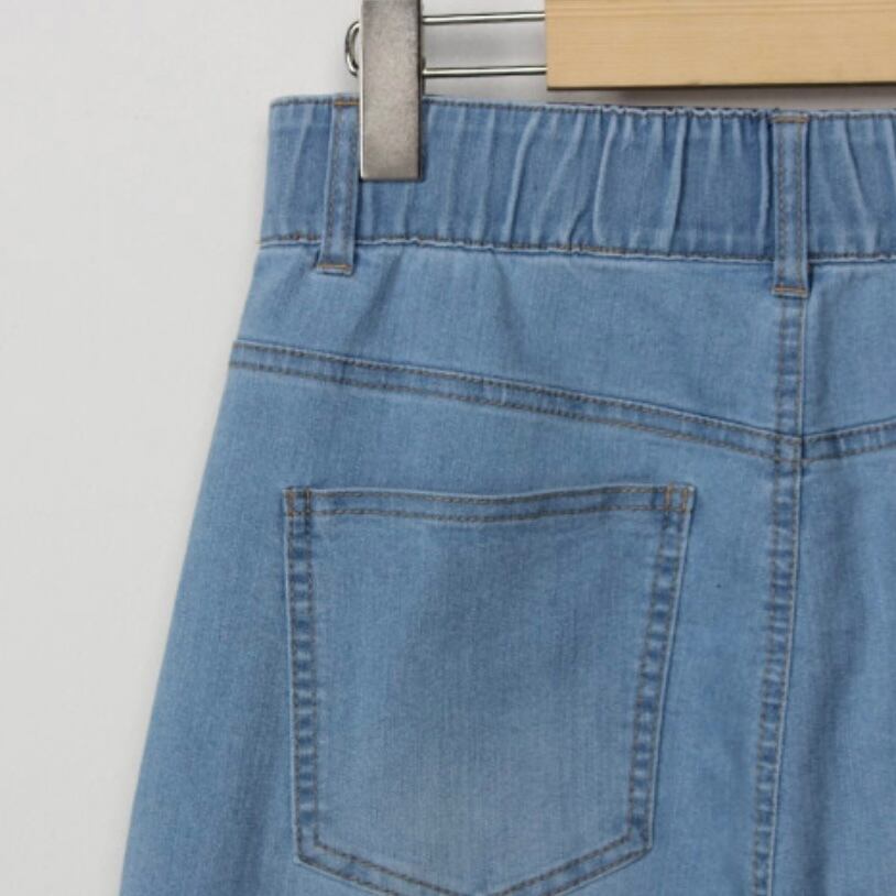 ストレスフリー ダメージ入りデニムワイドパンツ