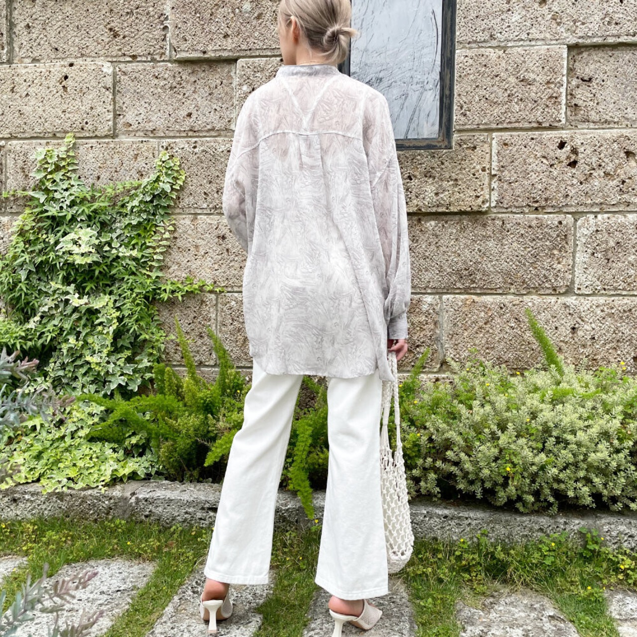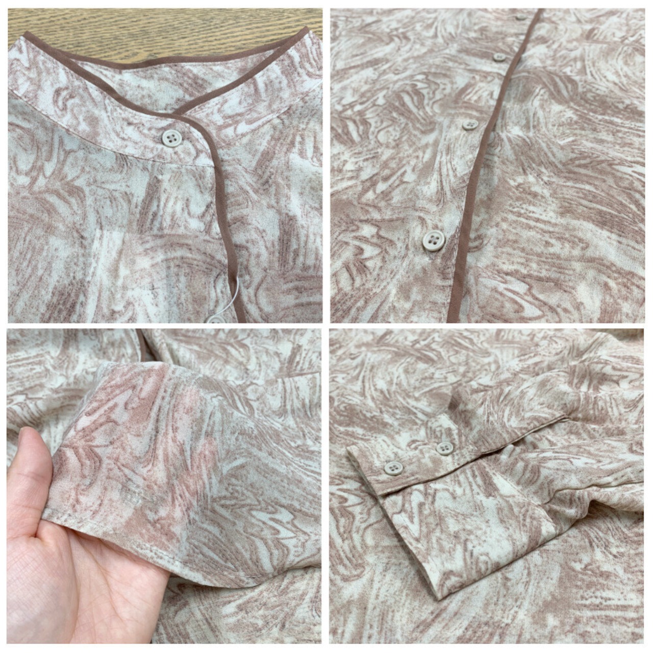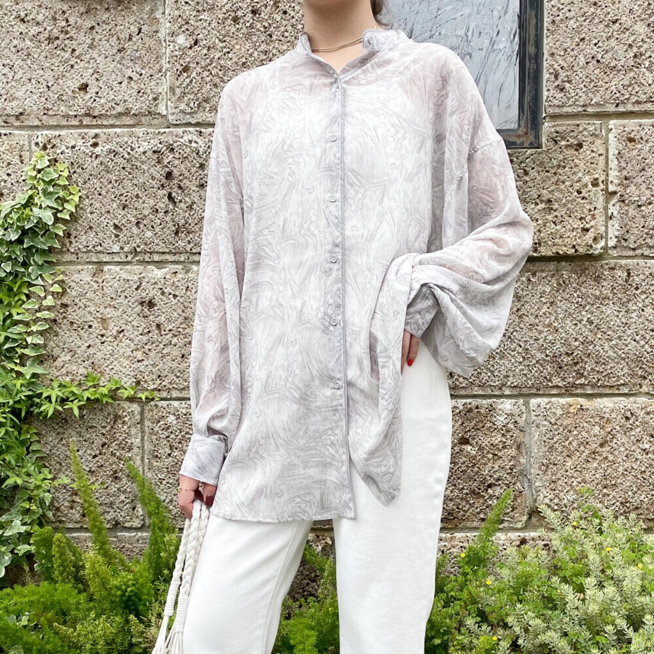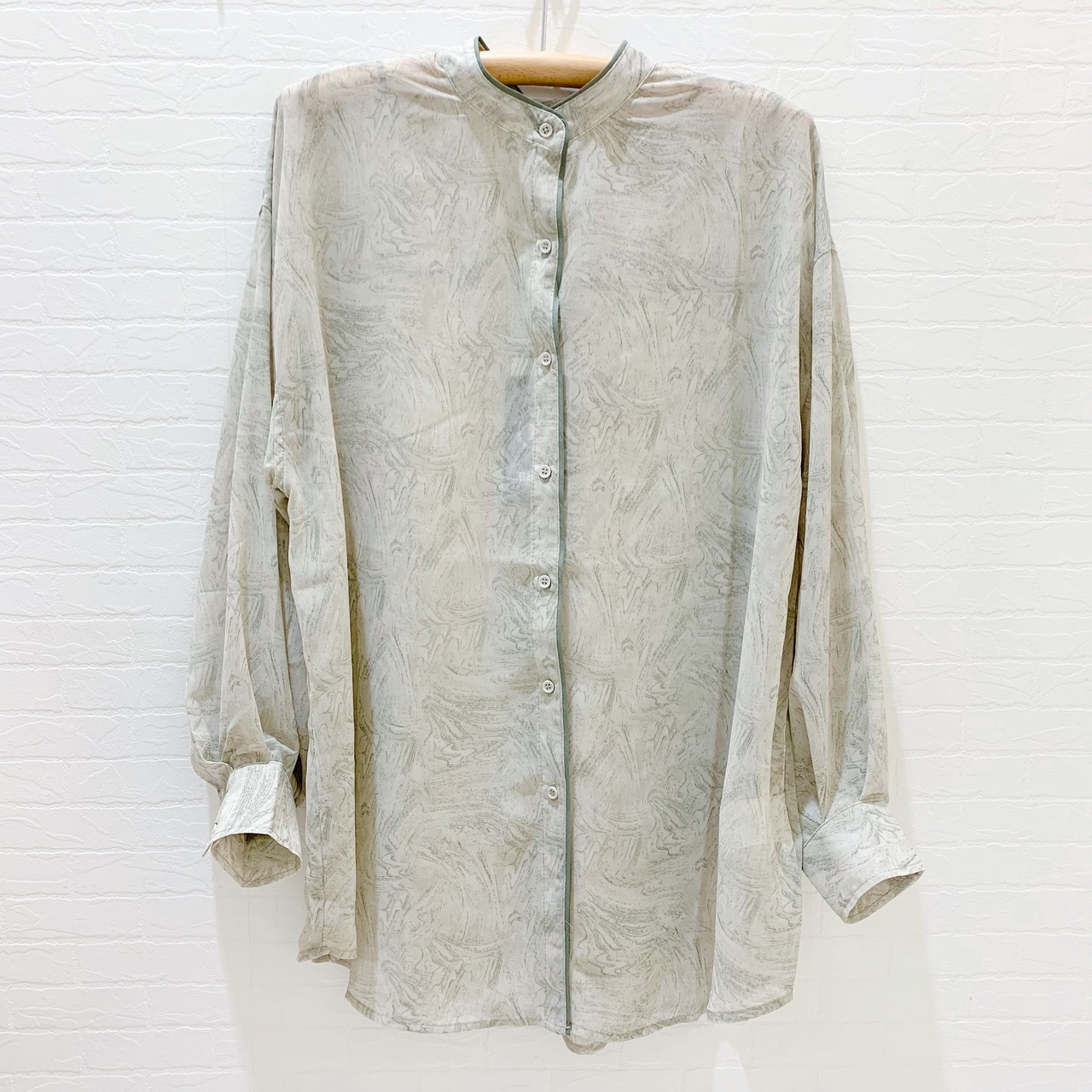 バンドカラー マーブル柄シャツ