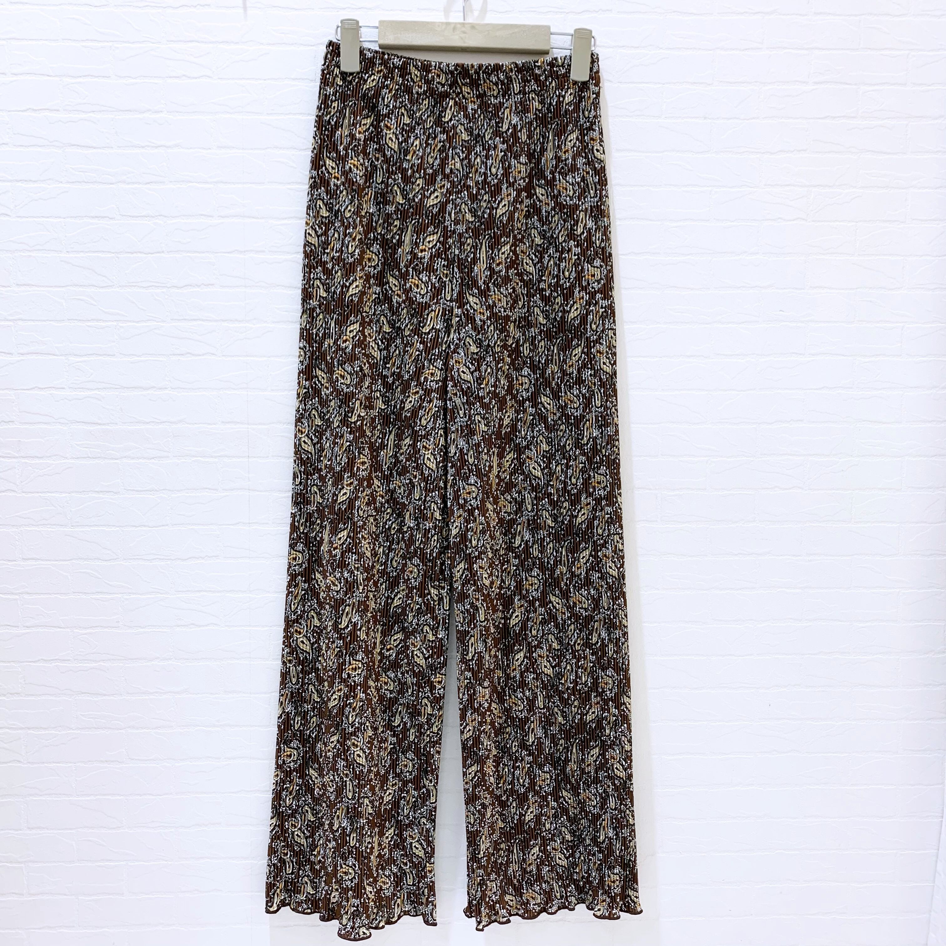 ペイズリー柄プリーツ ワイドパンツ