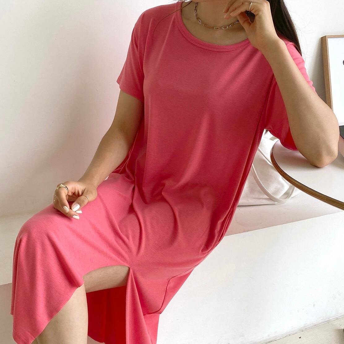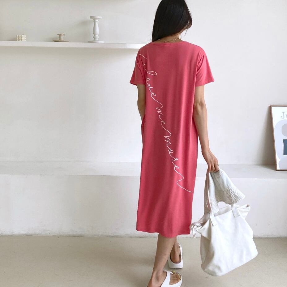 【price down】フロントスリット バックロゴ入り Tシャツワンピース