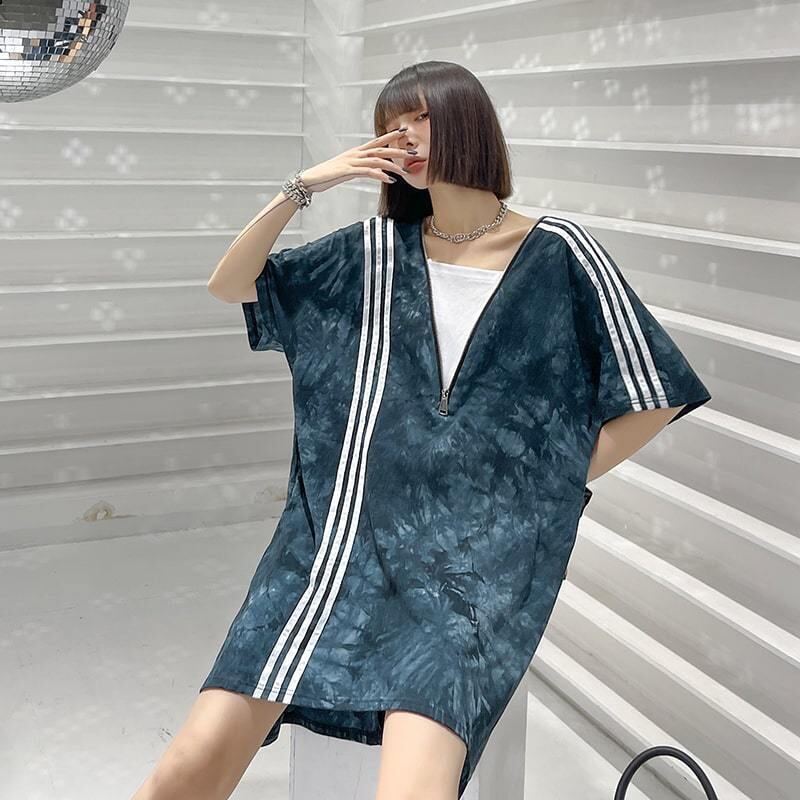 ライン入り タイダイ柄トップス