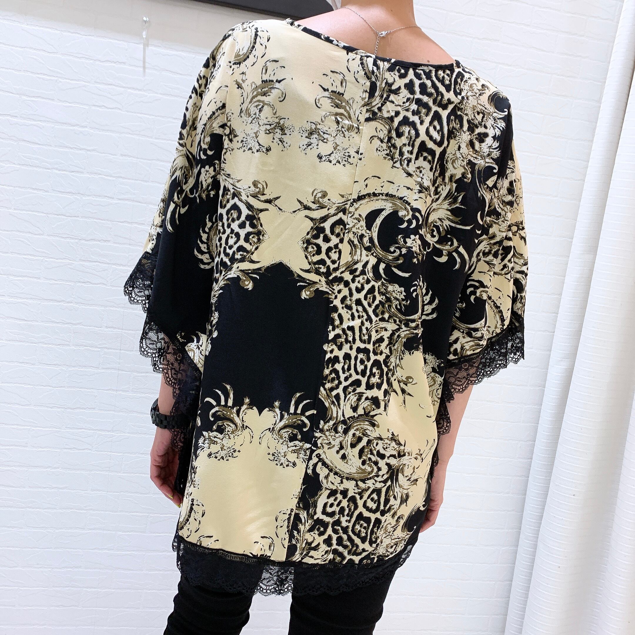 Size:free(袖丈[肩幅含む]44cm 袖口23cm バスト54cm 着丈54〜69cm) 平置き