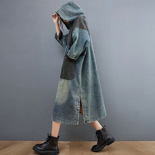 フード付きデニムワンピース