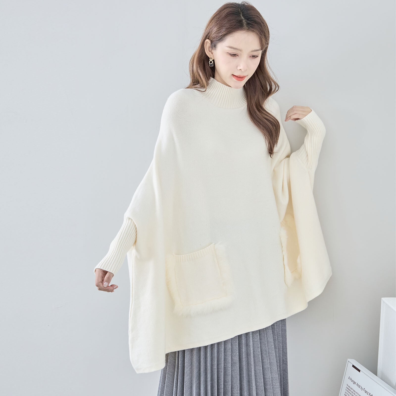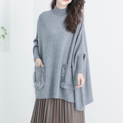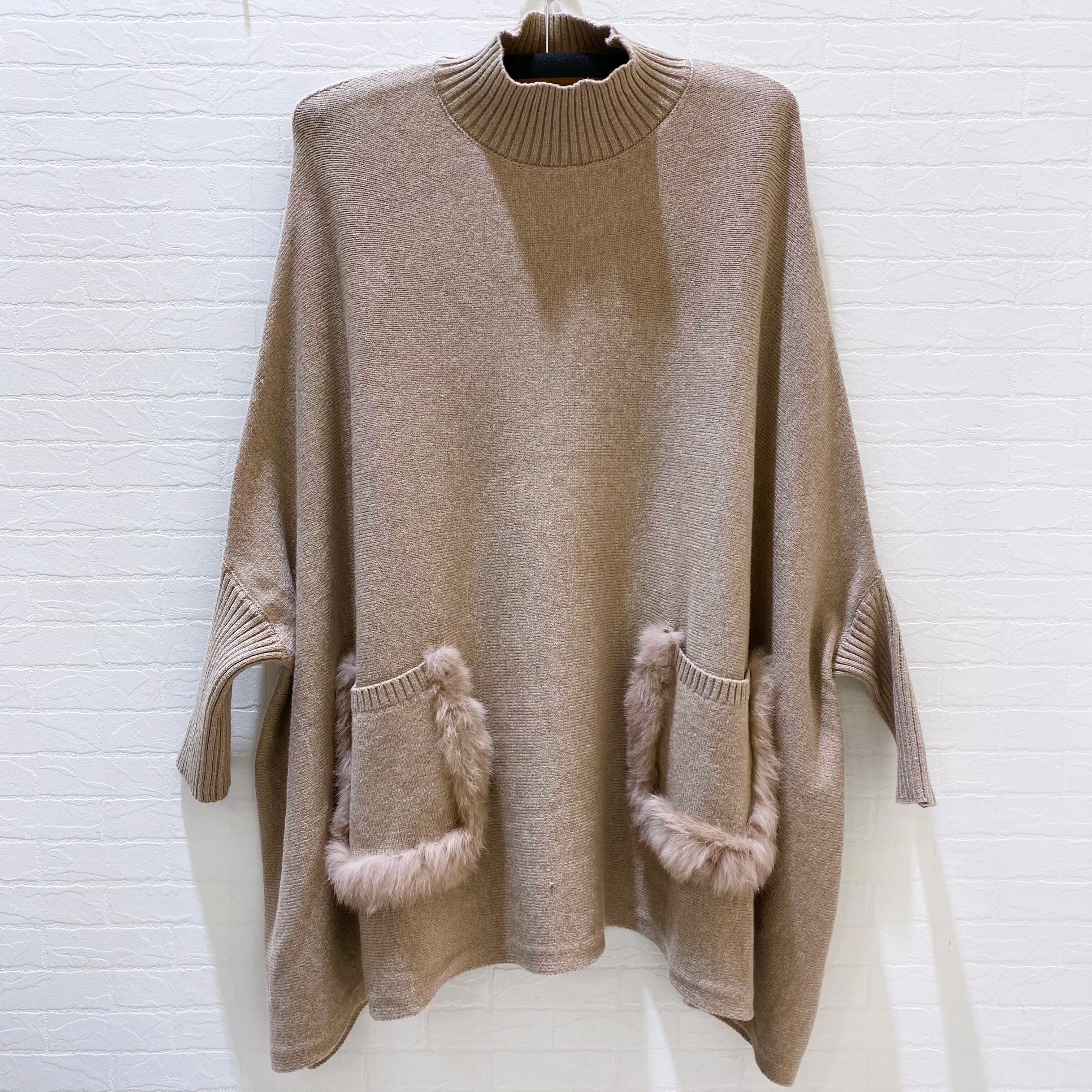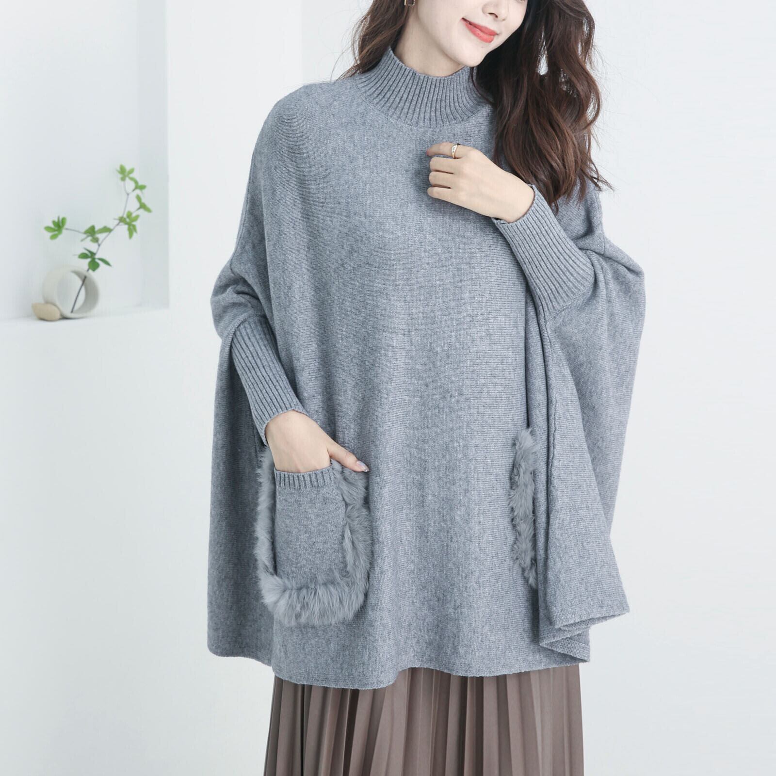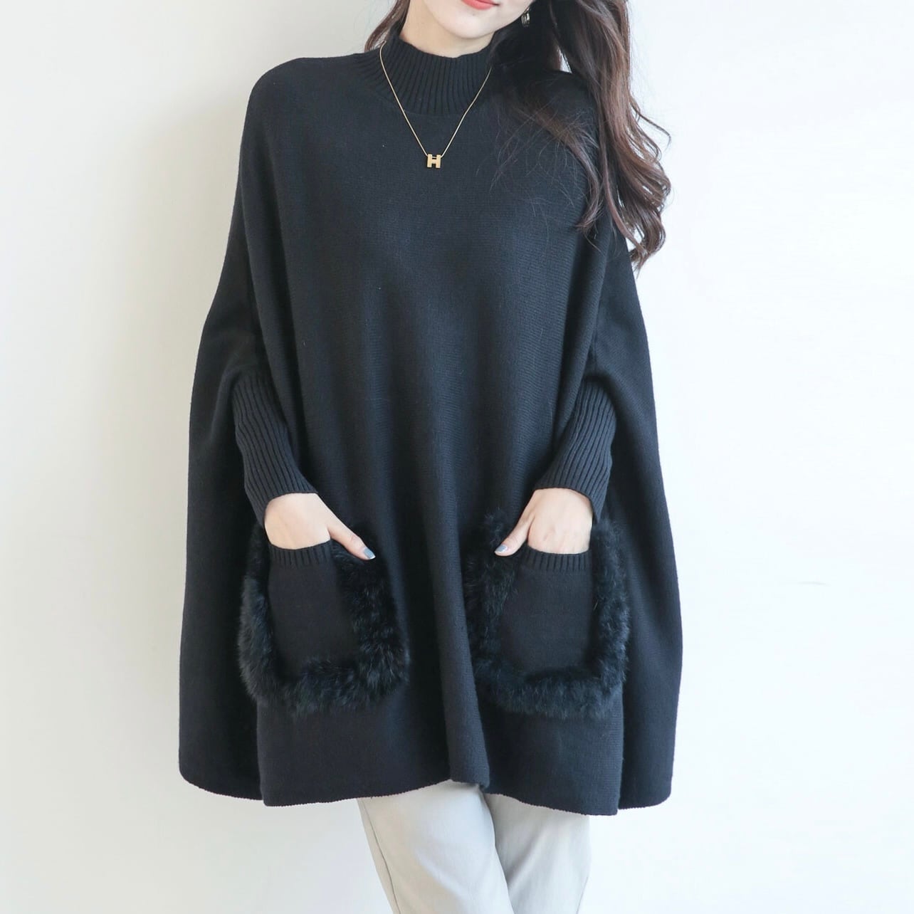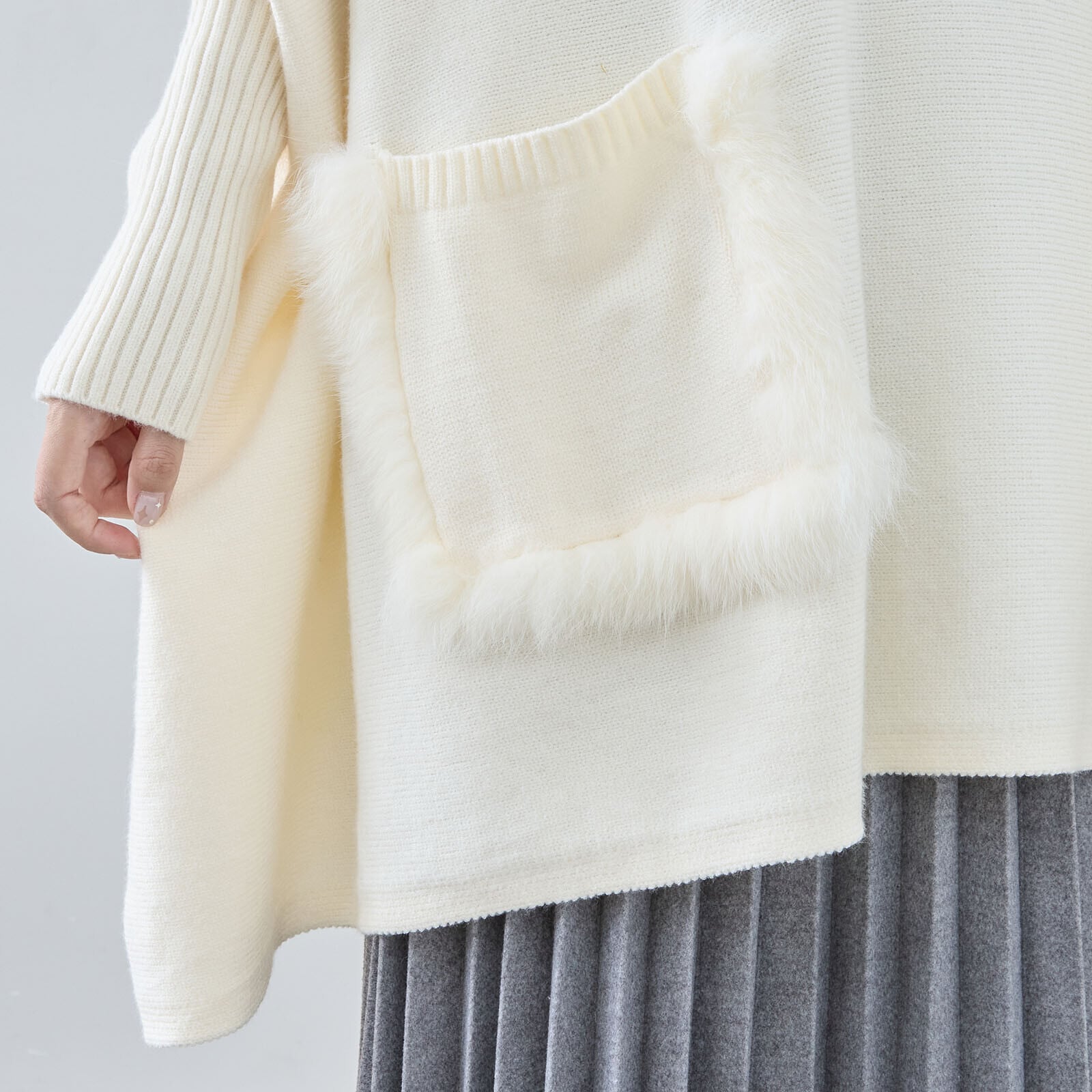 【price down】ラビットファーポケット ポンチョ風ニットトップス