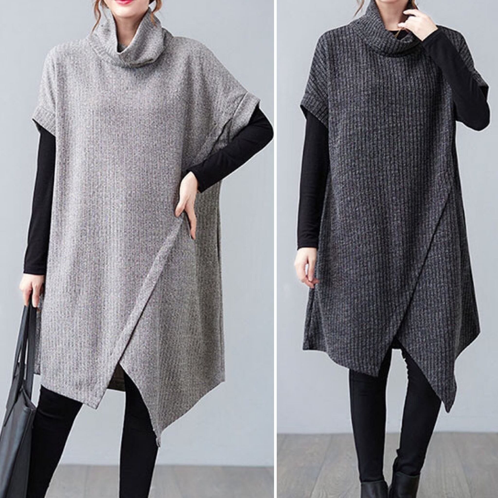 【30%OFF】アシメデザイン・オフタートルニットワンピース チュニック