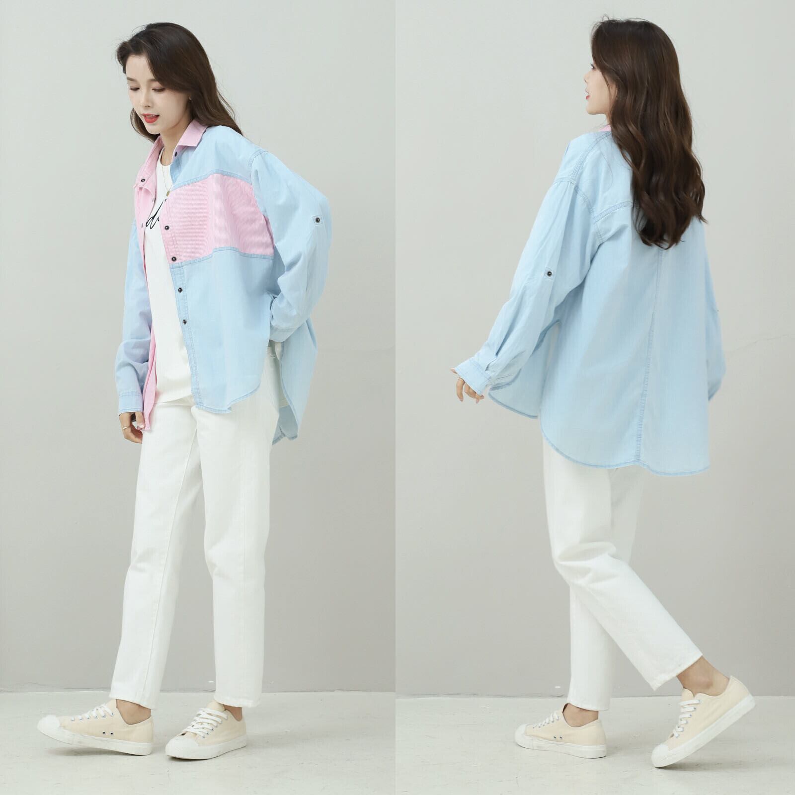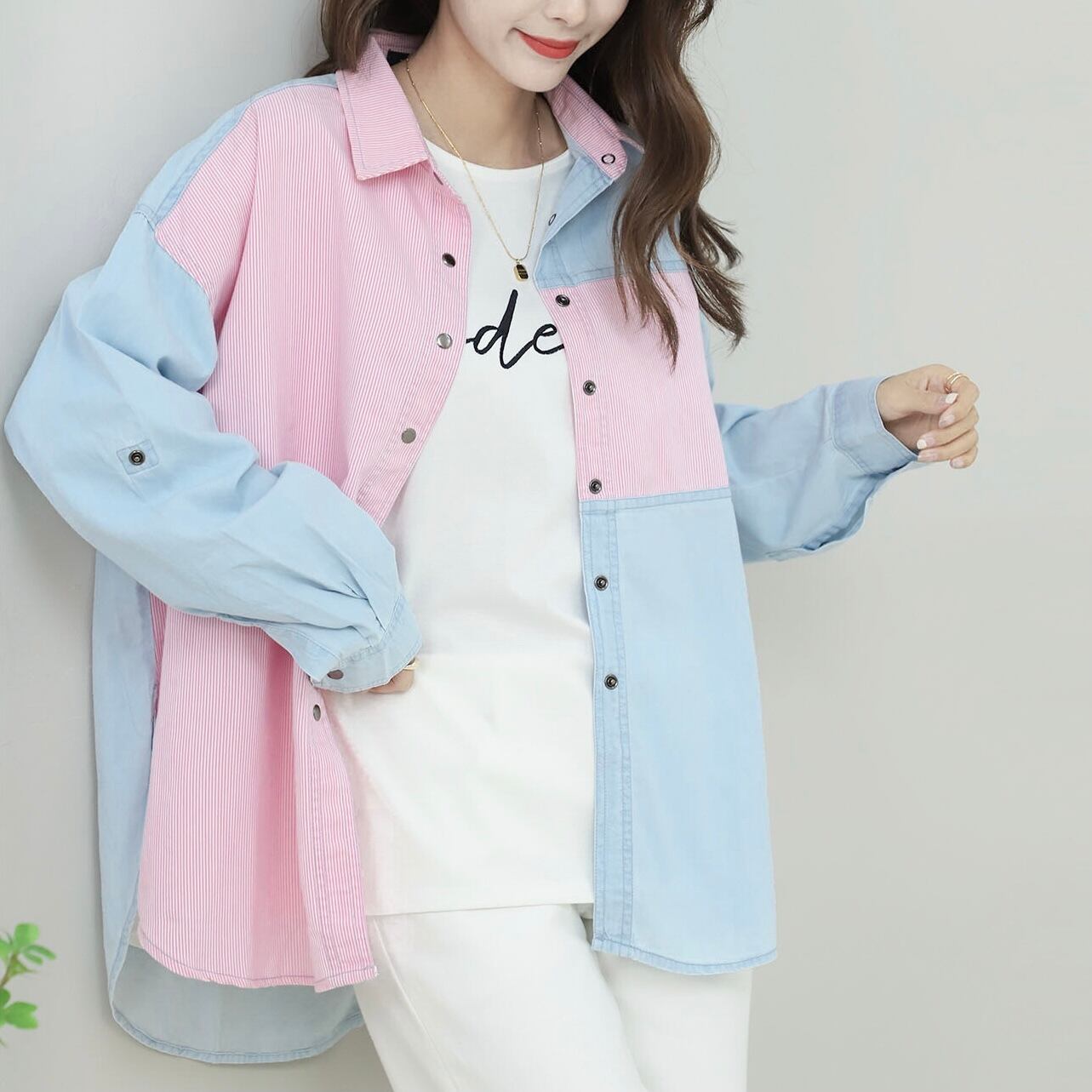 ストライプMIX デニム風シャツ