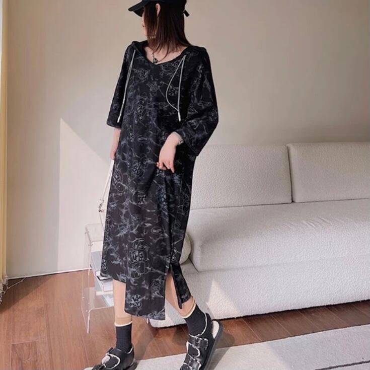タイダイ柄 フード付き ロングTシャツワンピース