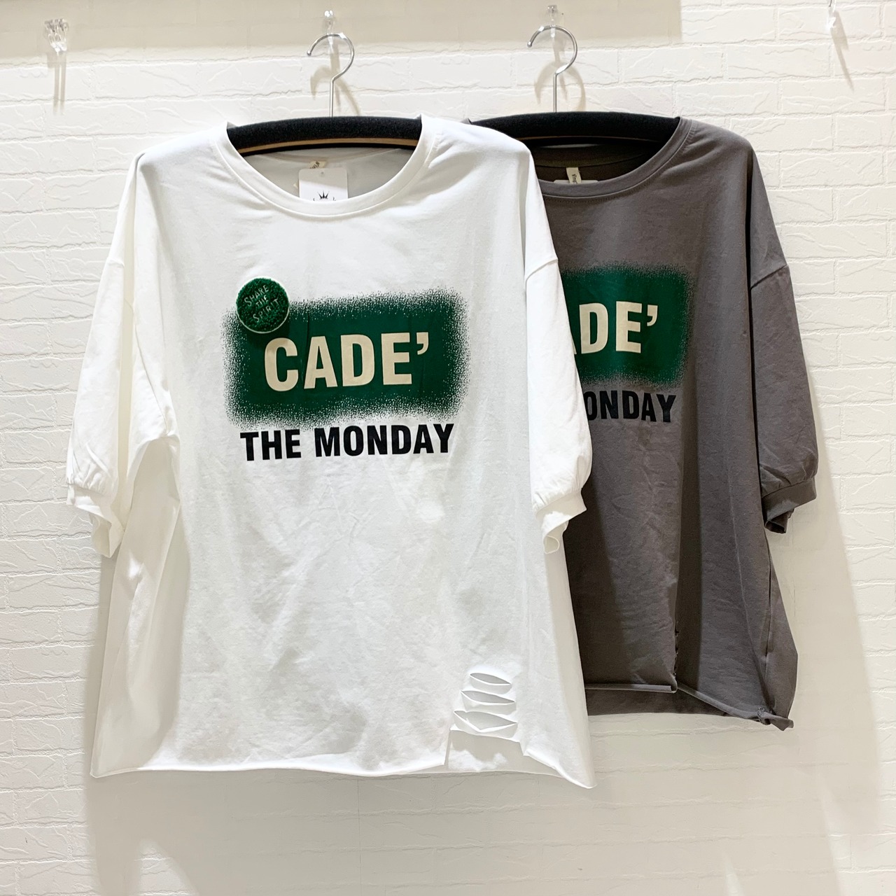 ロゴ入り裾ダメージTシャツ