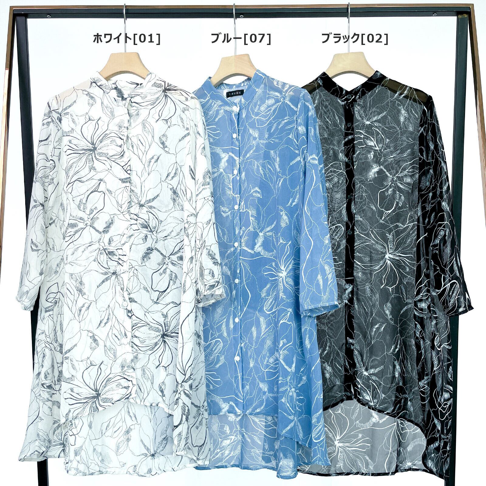 花柄 シアーシャツブラウス