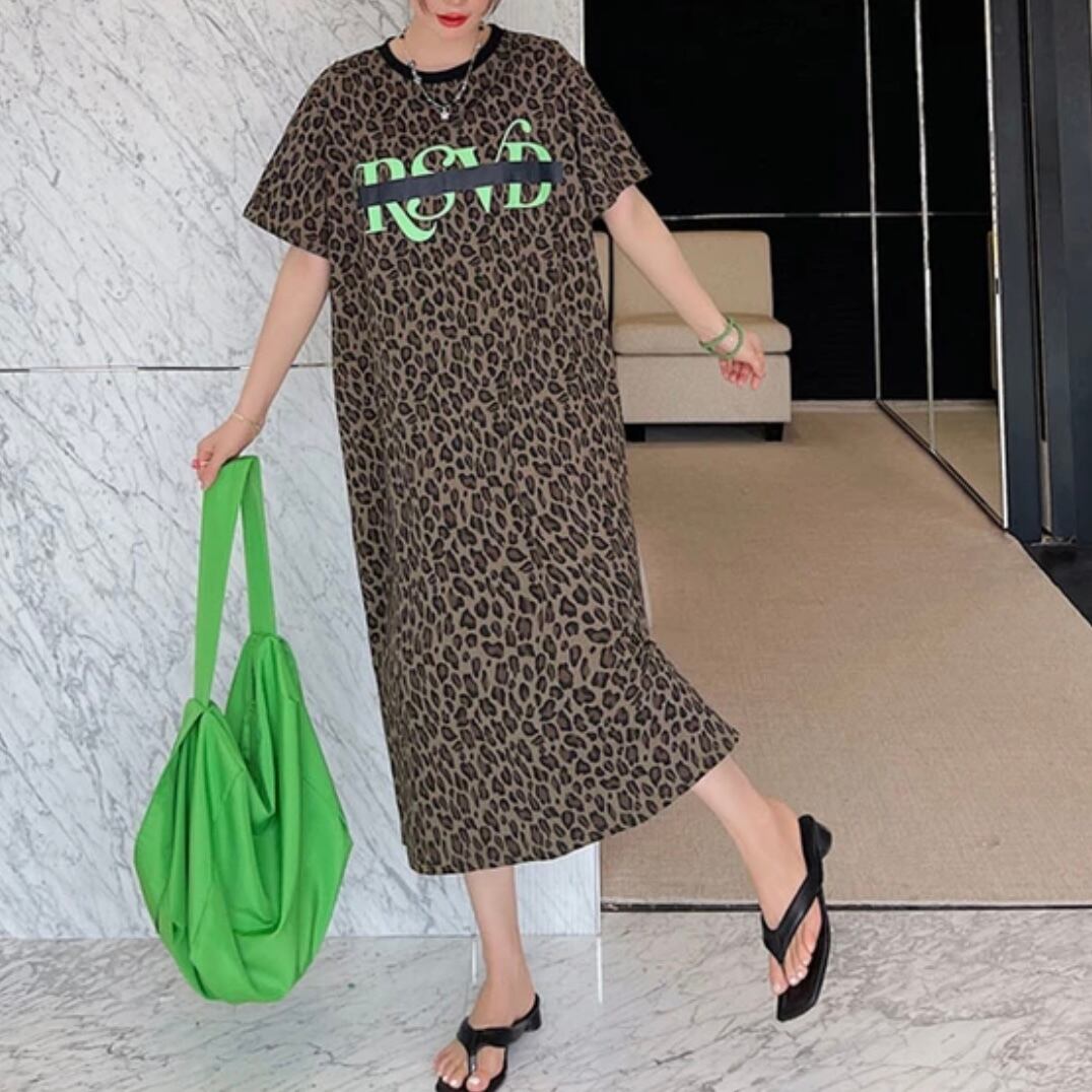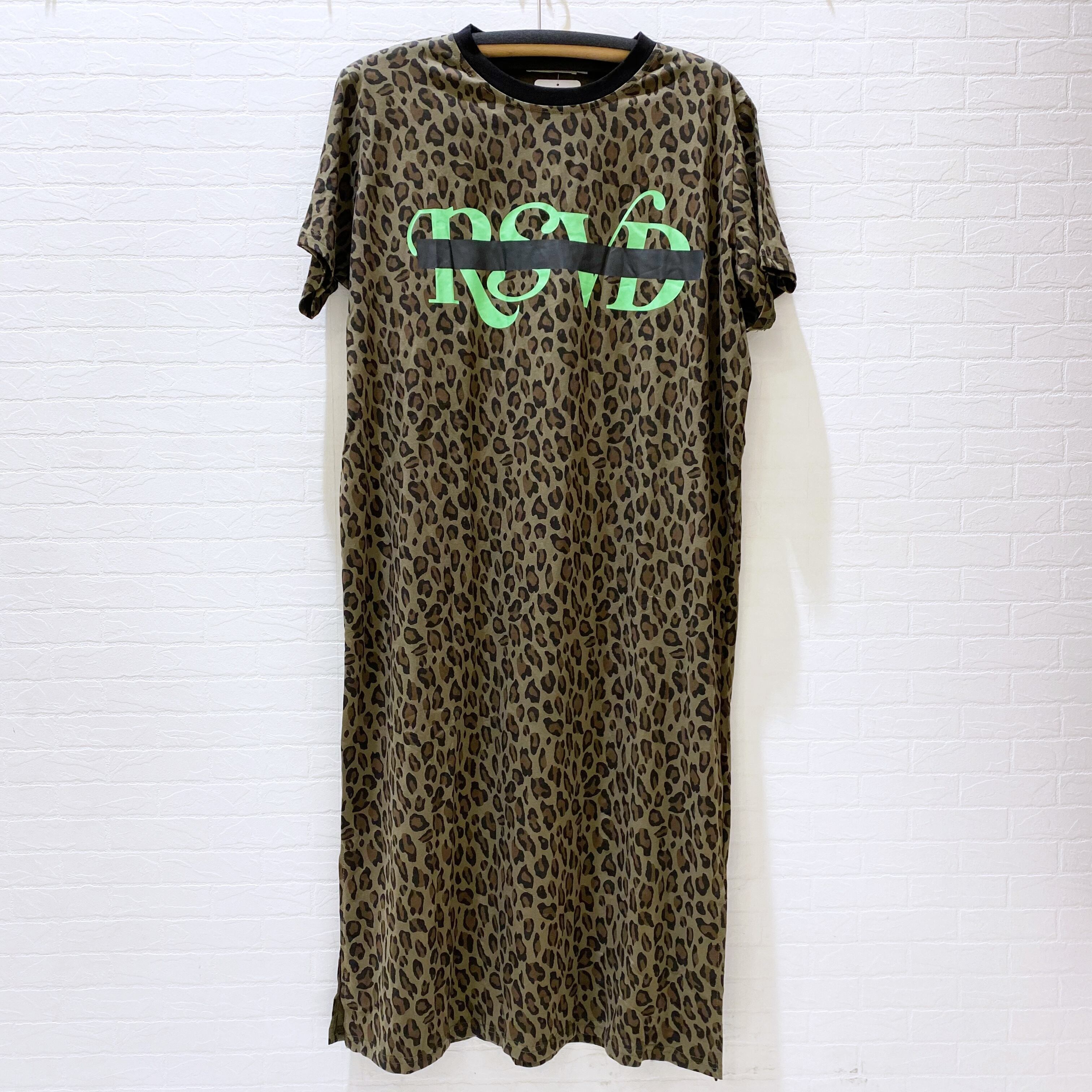 ロゴ入り ヒョウ柄 ロングTシャツ ワンピース