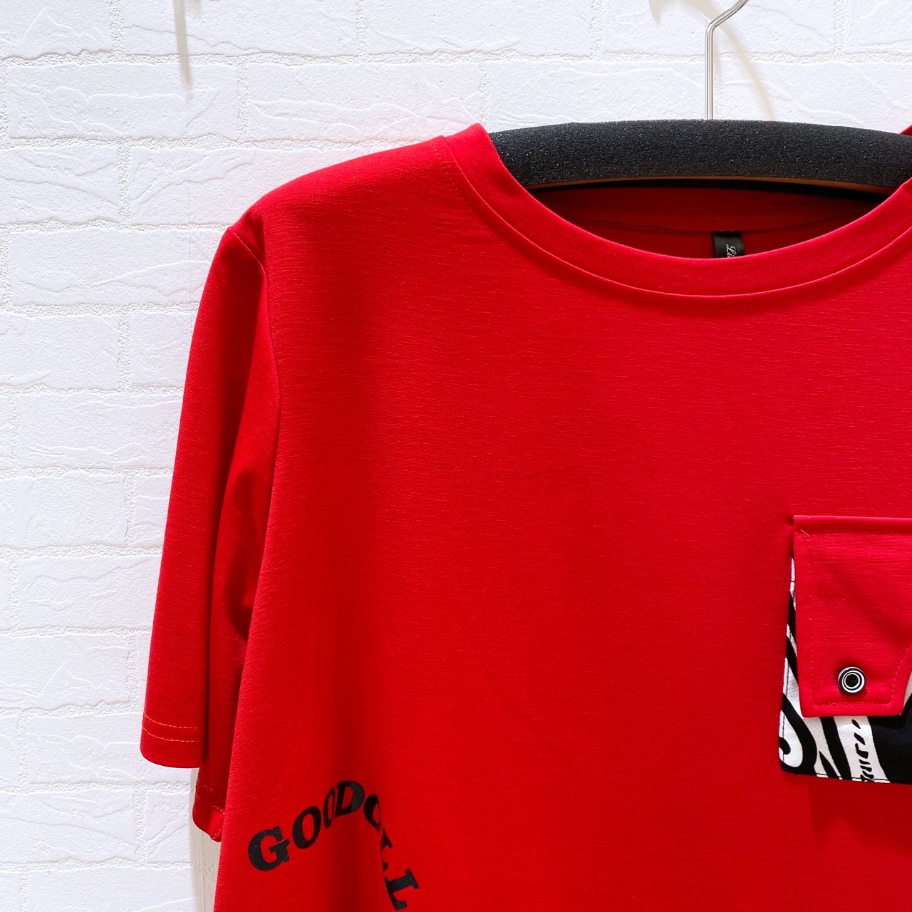 Size:free (肩幅43cm 袖丈25cm アームホール24cm 身幅58cm 着丈55cm)平置き