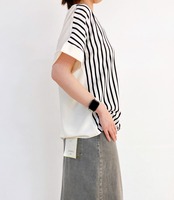 ストライプ前結びトップス