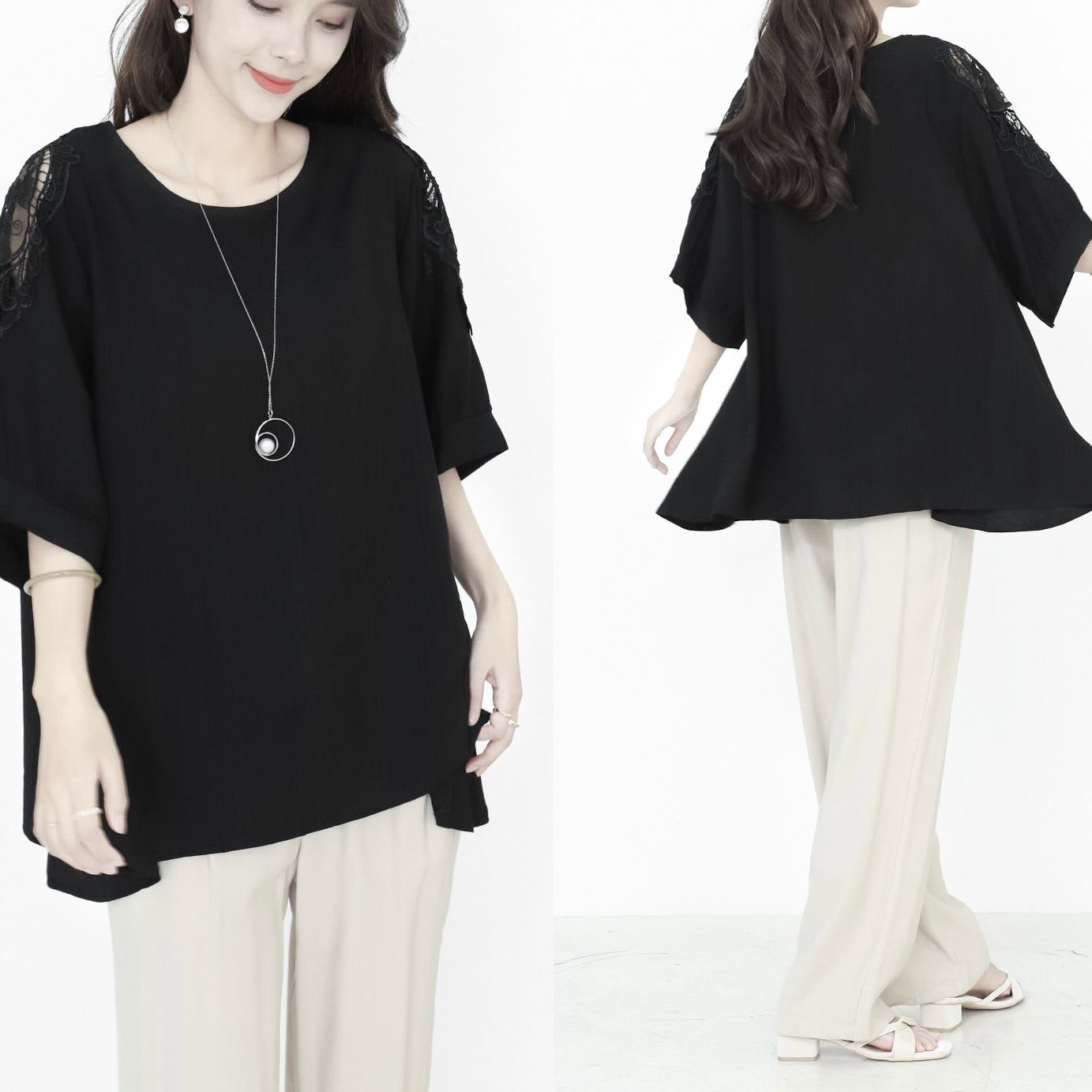 肩レース付き 変形ブラウス