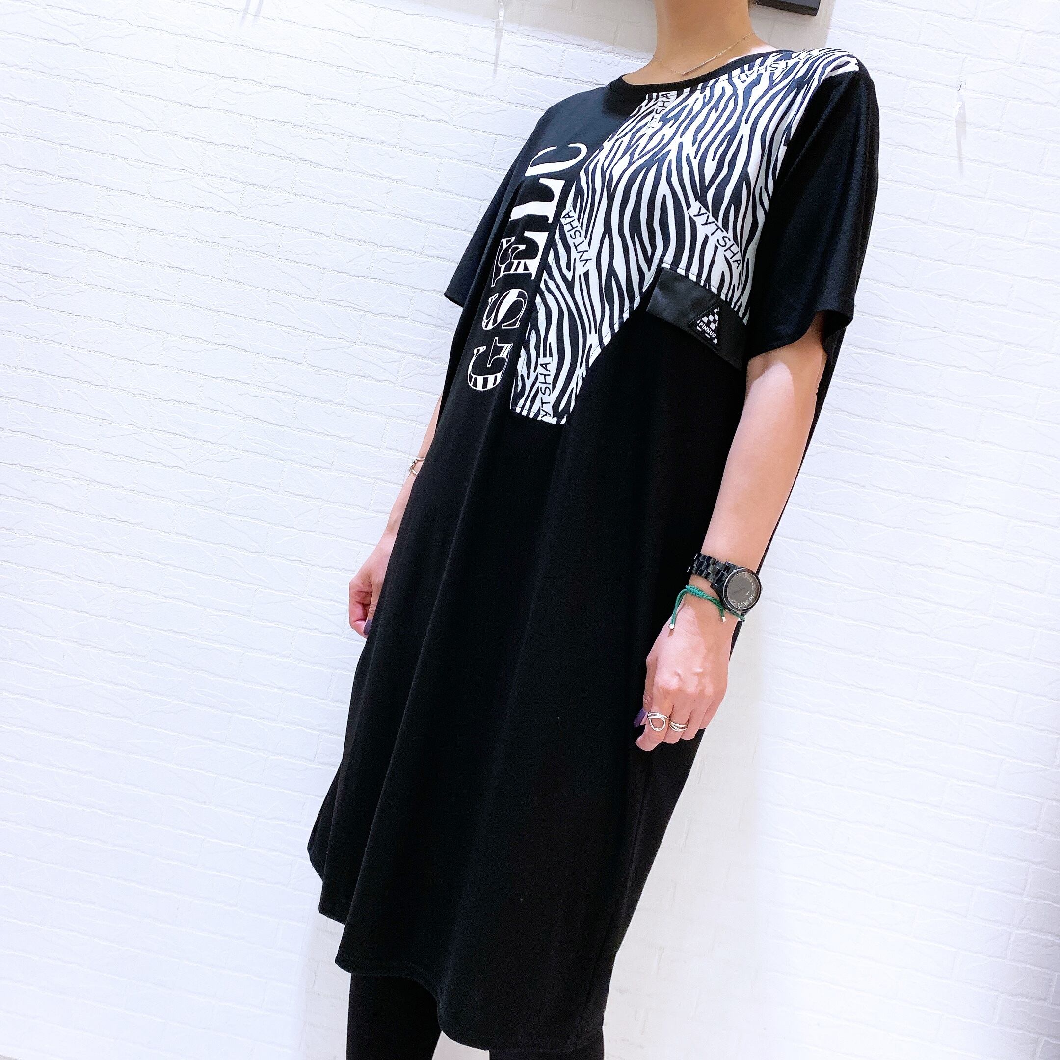 ゼブラ柄モノトーン チュニックトップス