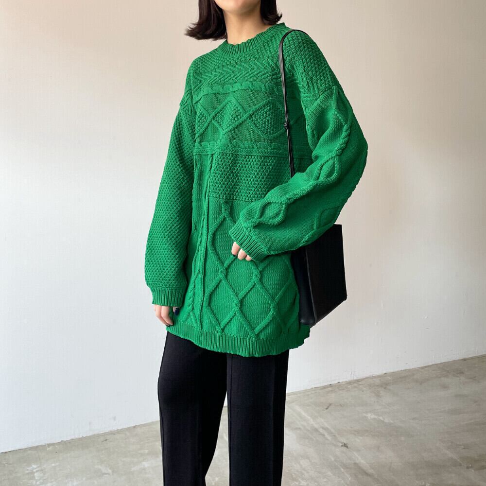 ポリエステルスポンジニット ケーブル編地切替チュニックプルオーバー