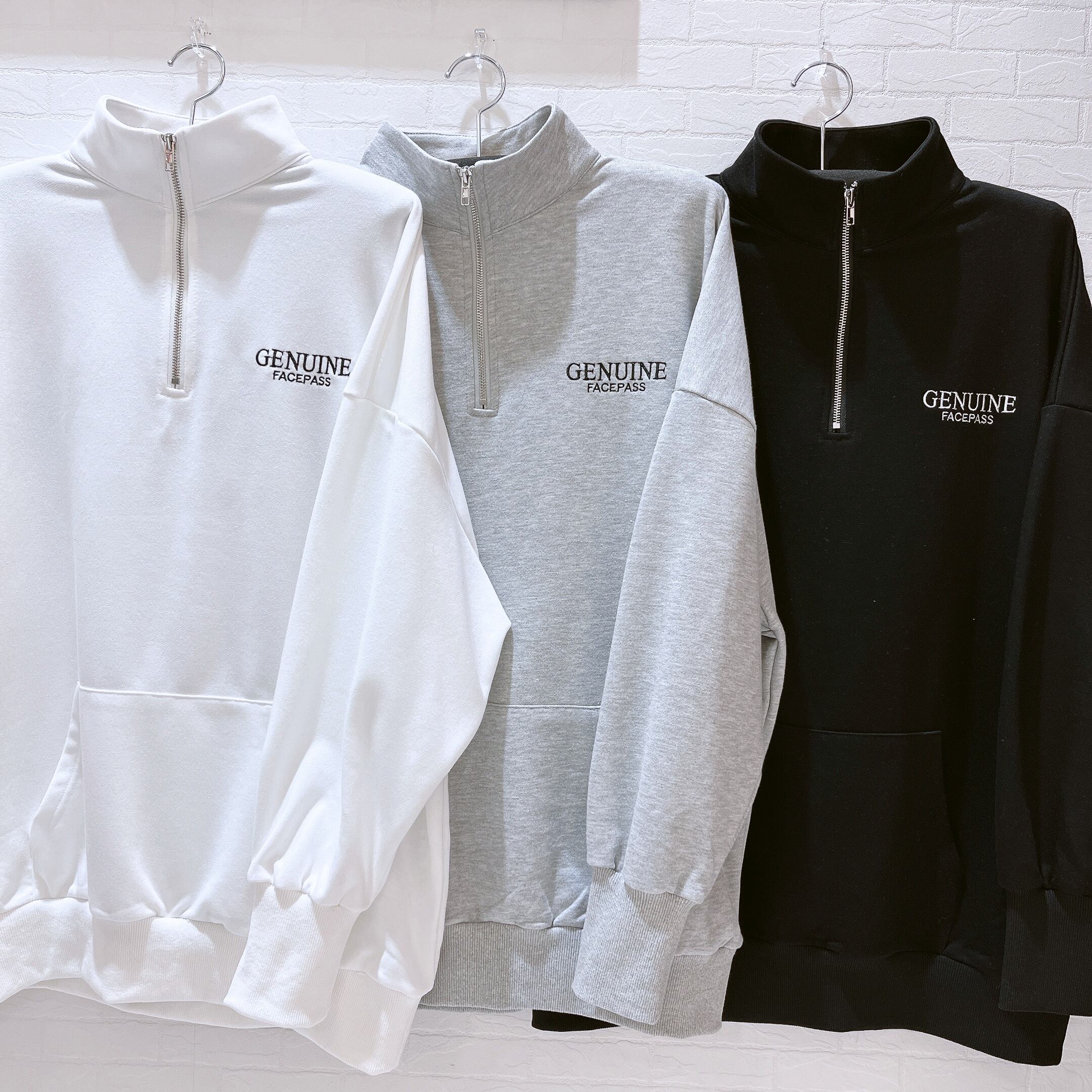 ハーフZIP 刺繍ロゴトップス