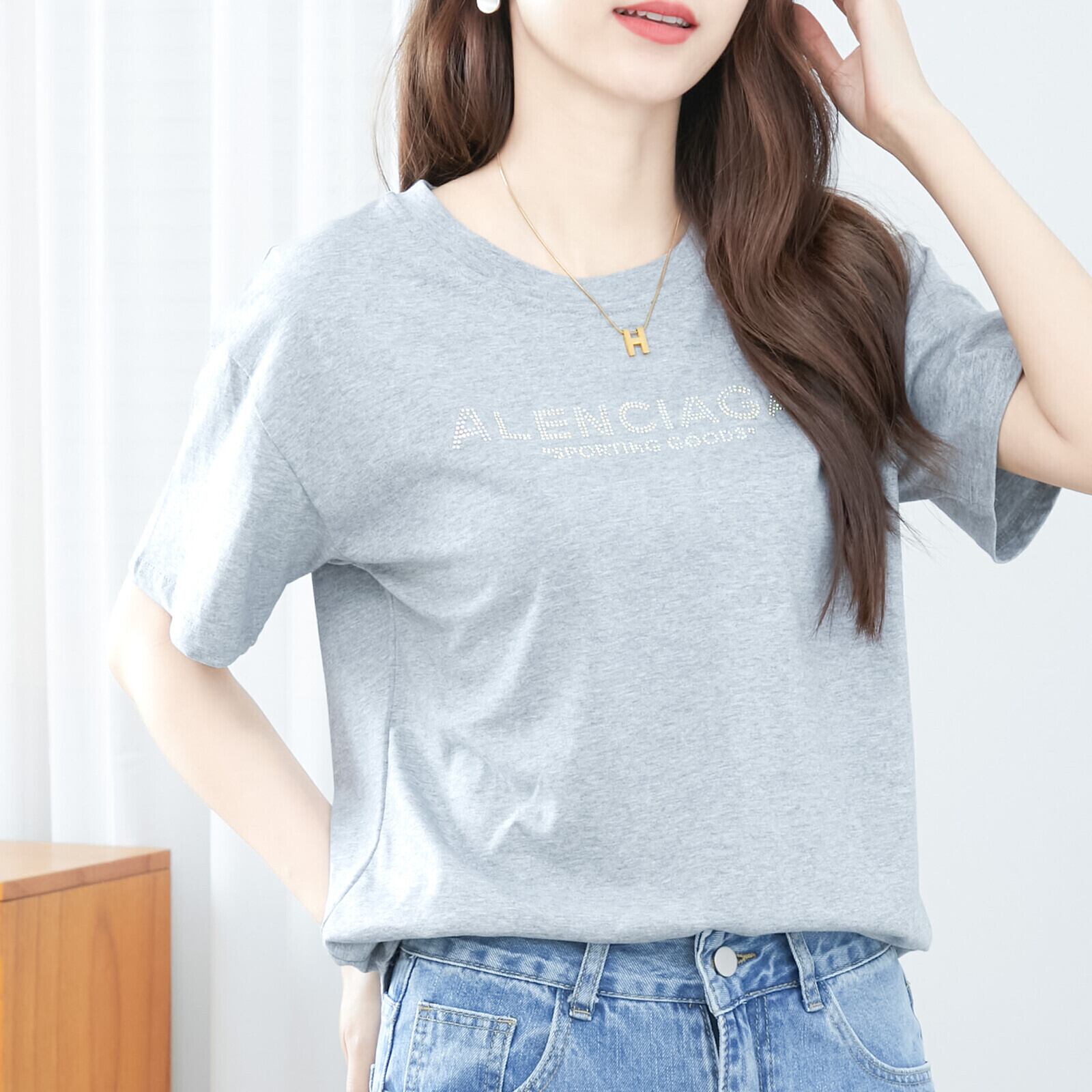 ラインストーンロゴ入りTシャツ