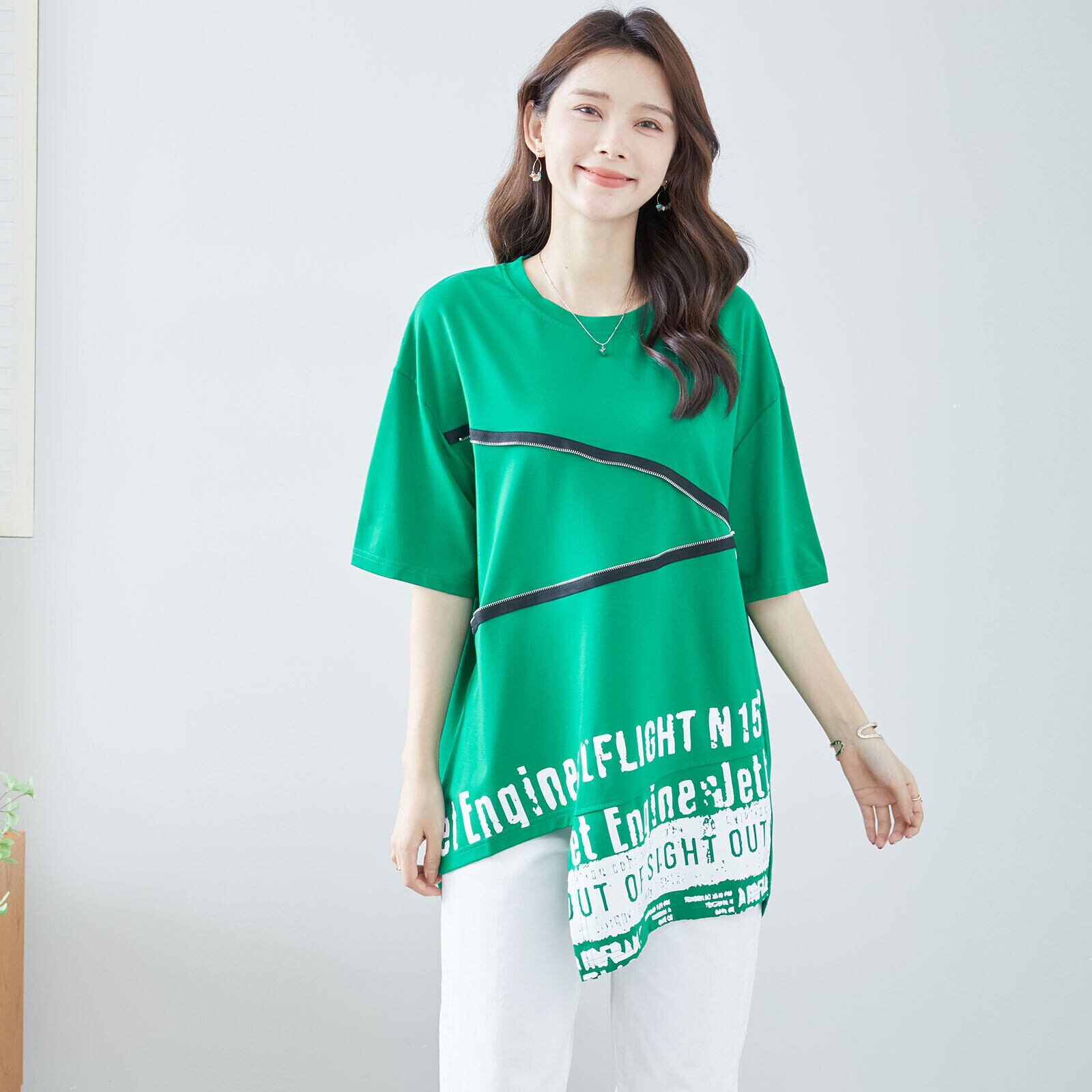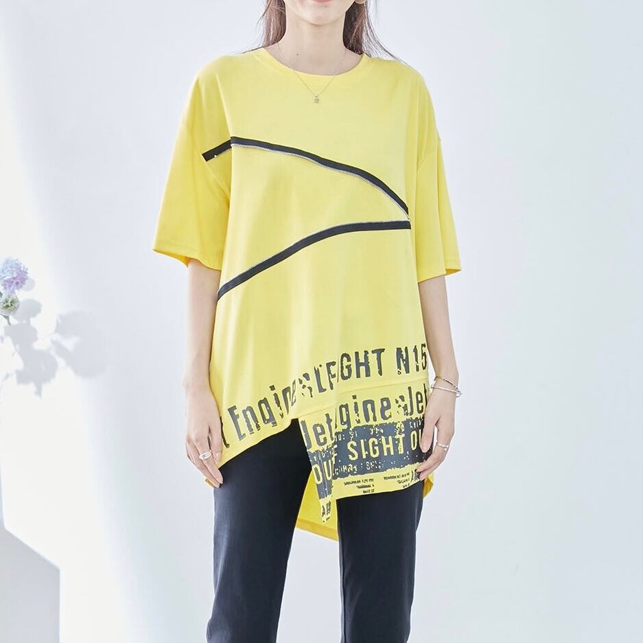 英字プリントアシンメトリーカットソー