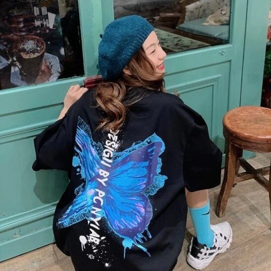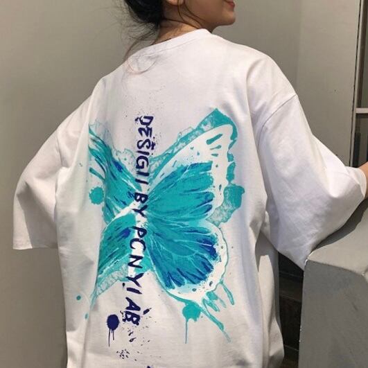 バタフライプリントTシャツ