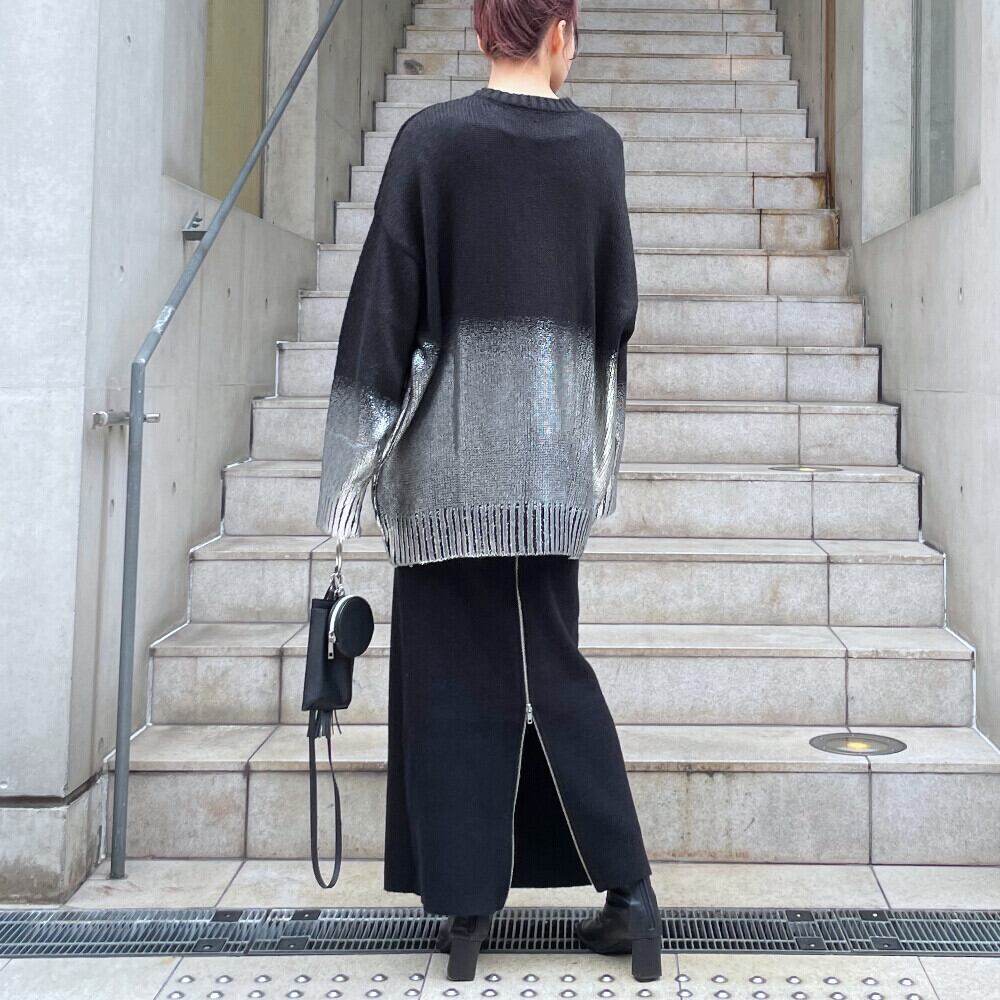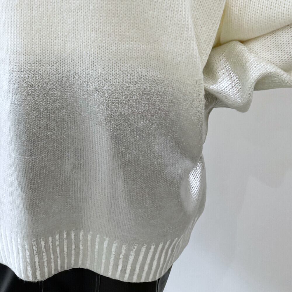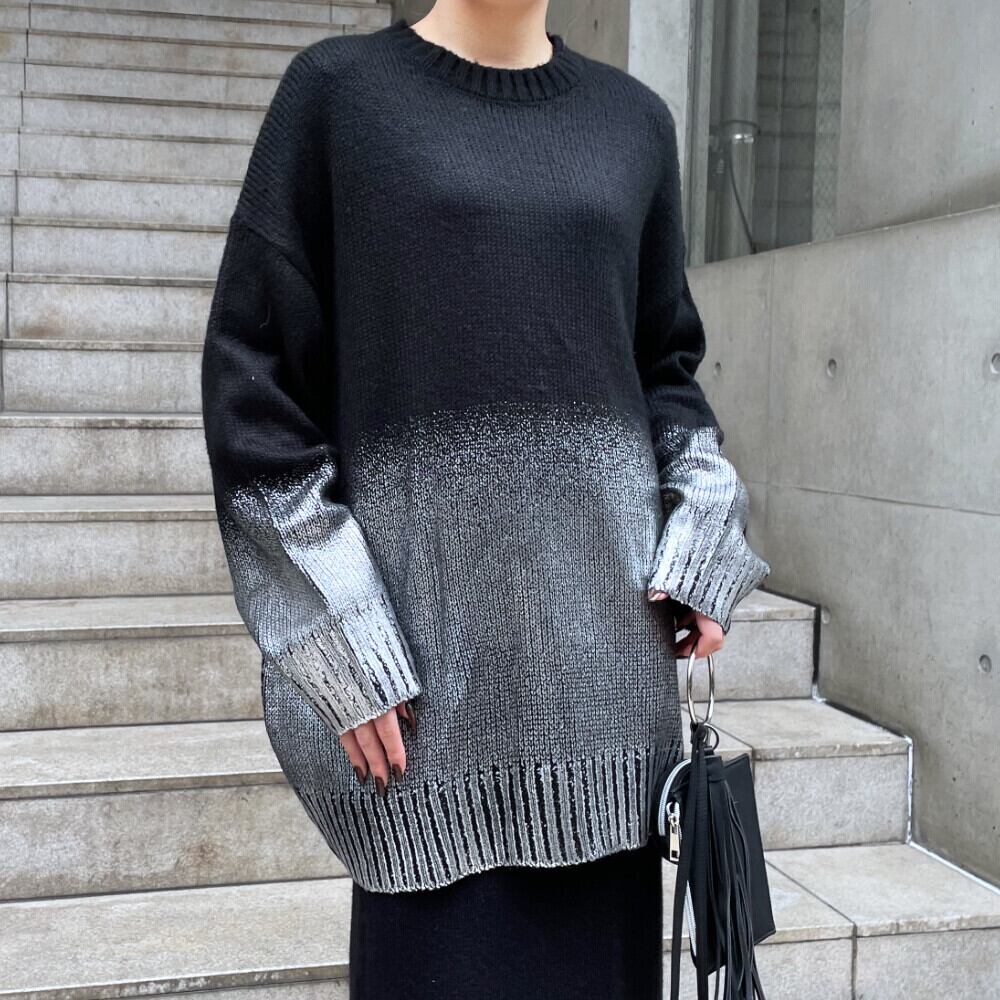 トレンドライクなシルバー箔を大胆にプリントしたニット。 一枚でも存在感のあるアイテム★